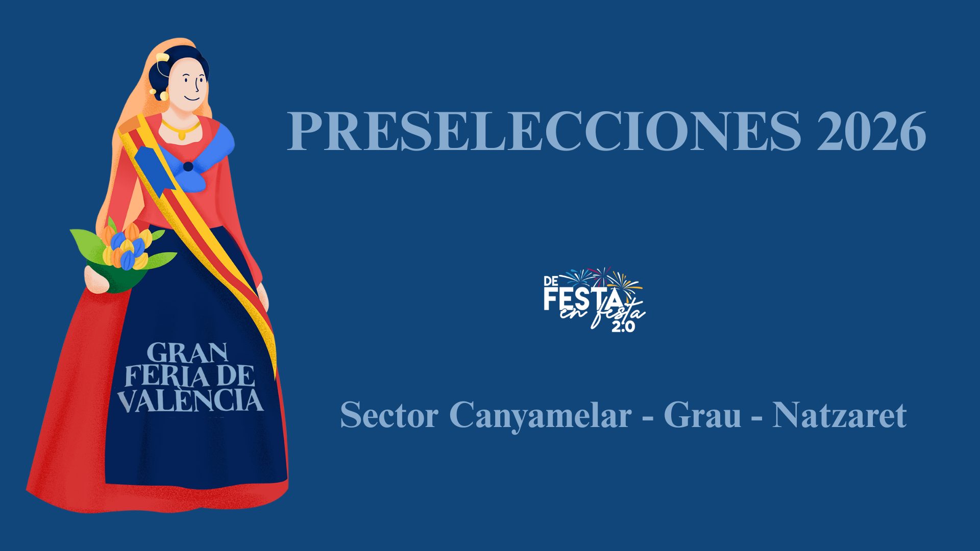 Estas son las candidatas a  Falleras Mayores de Valencia 2026 del sector Canyamelar-Grau-Natzaret celebrado este domingo 13 de julio en el Pabellón Sur de los Jardines del Palau.