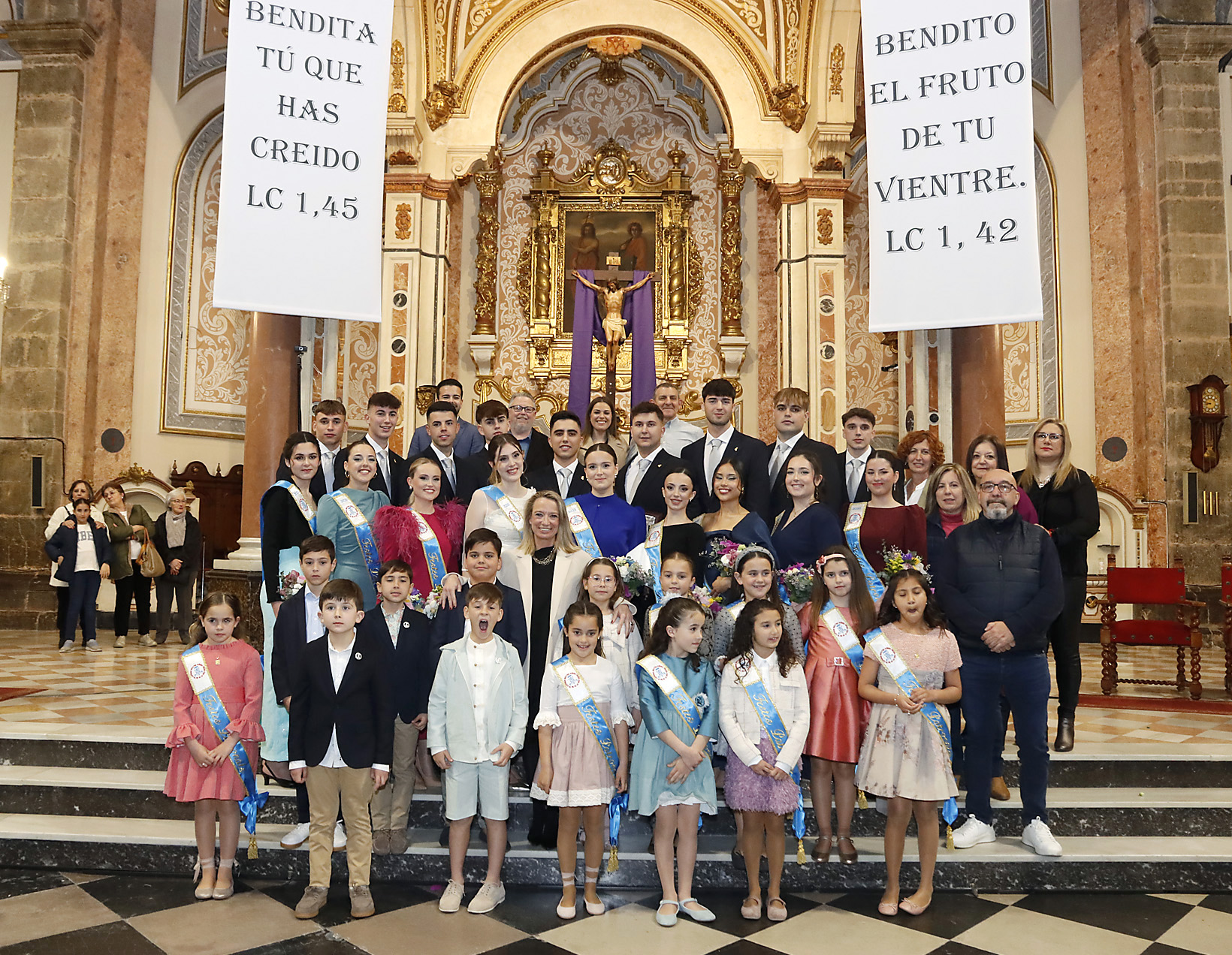 Los representantes de los festeros de 2024 fueron los encargados de dar la bienvenida al altar a los protagonistas de la noche..