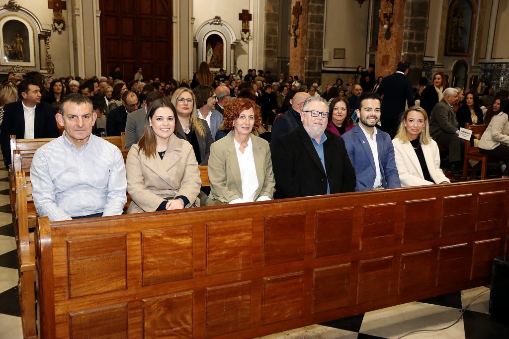 El Himno a la Virgen, cantado por el público que llenaba los Santos Juanes, puso el punto final al primer acto oficial de los festeros 2025.