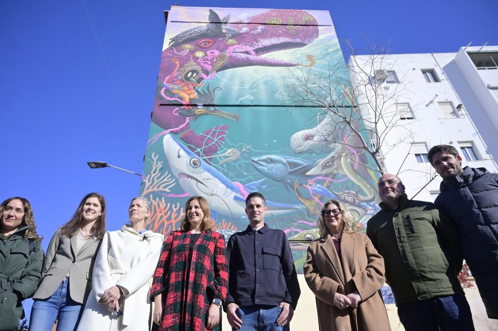 Arte urbano y concienciación ambiental se unen en el mural del comprometido artista urbano Antonio Segura Donat, más conocido como Dulk, pintado en el lateral de un edificio de la calle Poble Nou de la Mar, en el barrio del Cabanyal. La magna obra, impulsada y financiada por la Fundación de L’Oceanogràfic y titulada ‘Mediterraneus’, ha sido presentada este jueves al público con la asistencia de la alcaldesa de València, María José Catalá; el equipo directivo de L’Oceanogràfic encabezado por su directora, Leocadia García Bartual; el propio artista; estudiantes de Bellas Artes y representantes vecinales.
