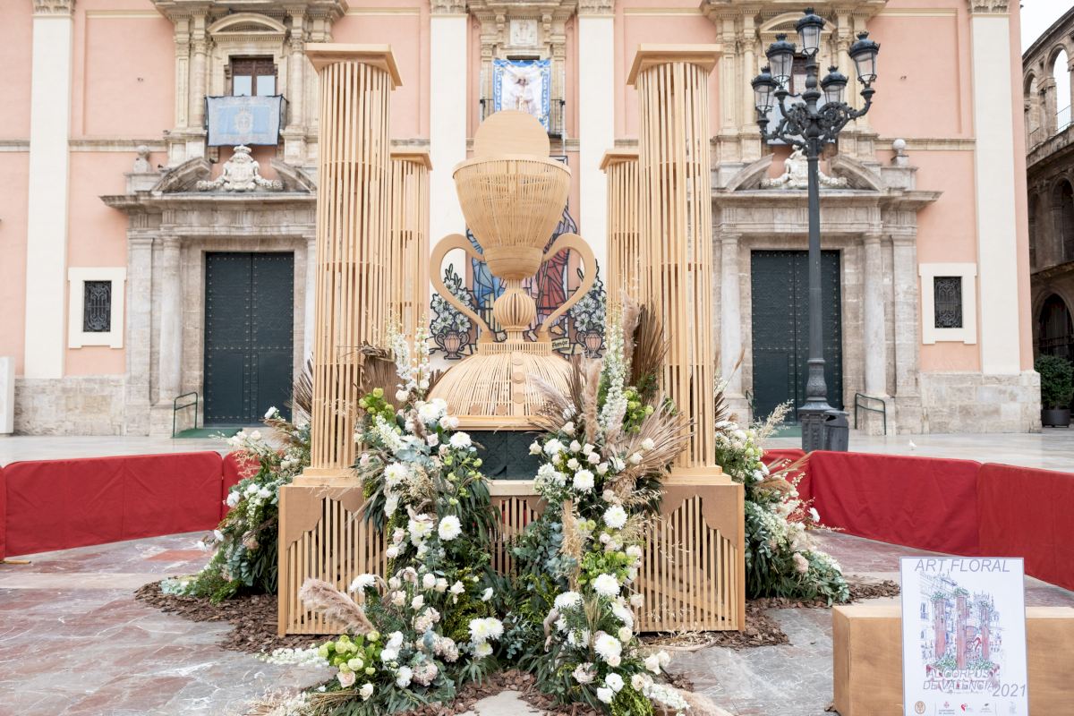 Instalación del monumento de arte floral de la Asociación en la Plaza de la Reina.