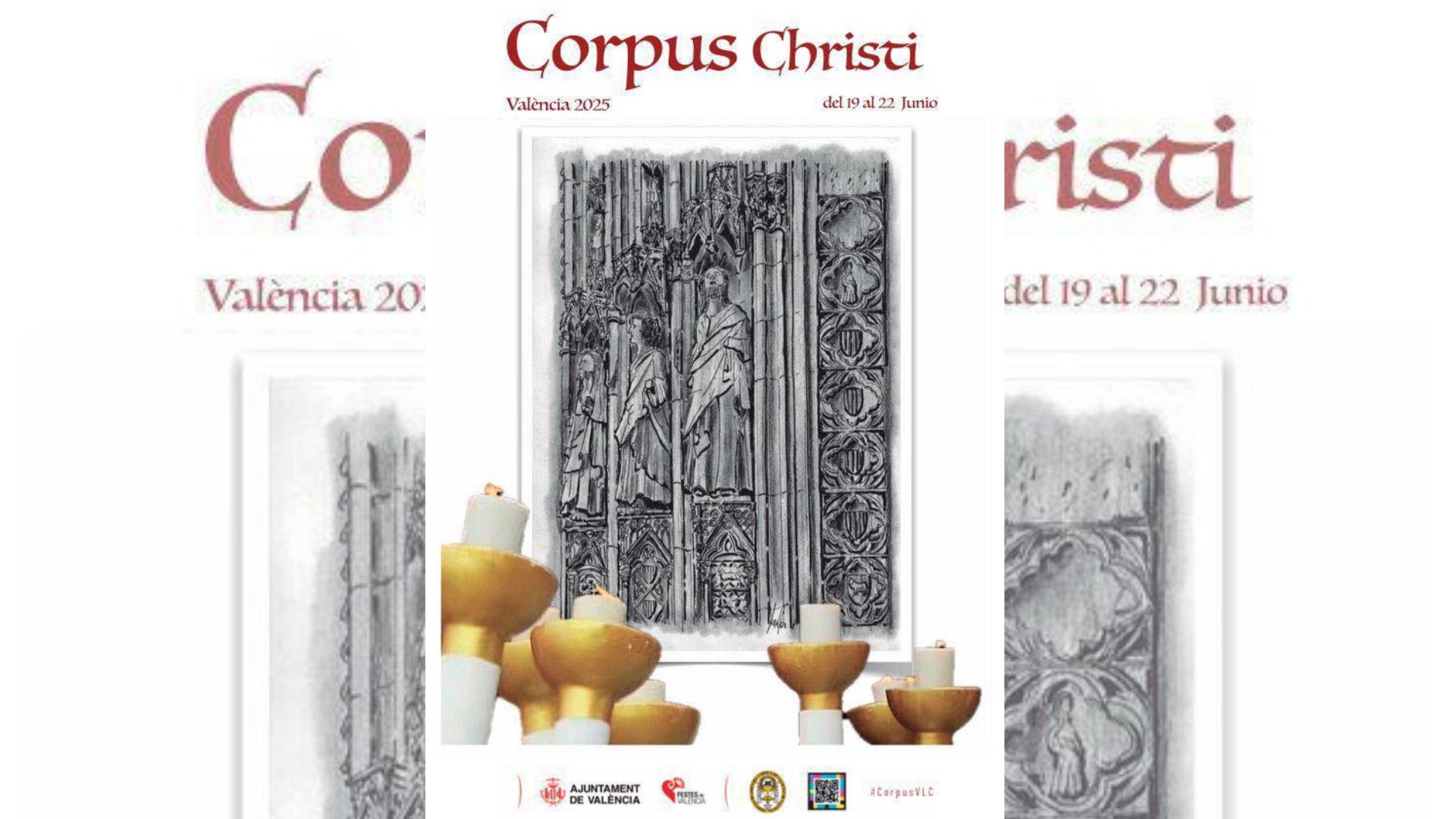 El cartel anunciador de la Festa Grossa está diseñado por el reconocido artista Juanjo García por invitación de la asociación Amics del Corpus. En él se muestra los cirialots y la puerta de los Apóstoles de la Catedral de València como protagonistas. “La obra refleja con maestría los símbolos que representan la festividad, creando una imagen que identificamos rápidamente con la esencia del Corpus Christi.