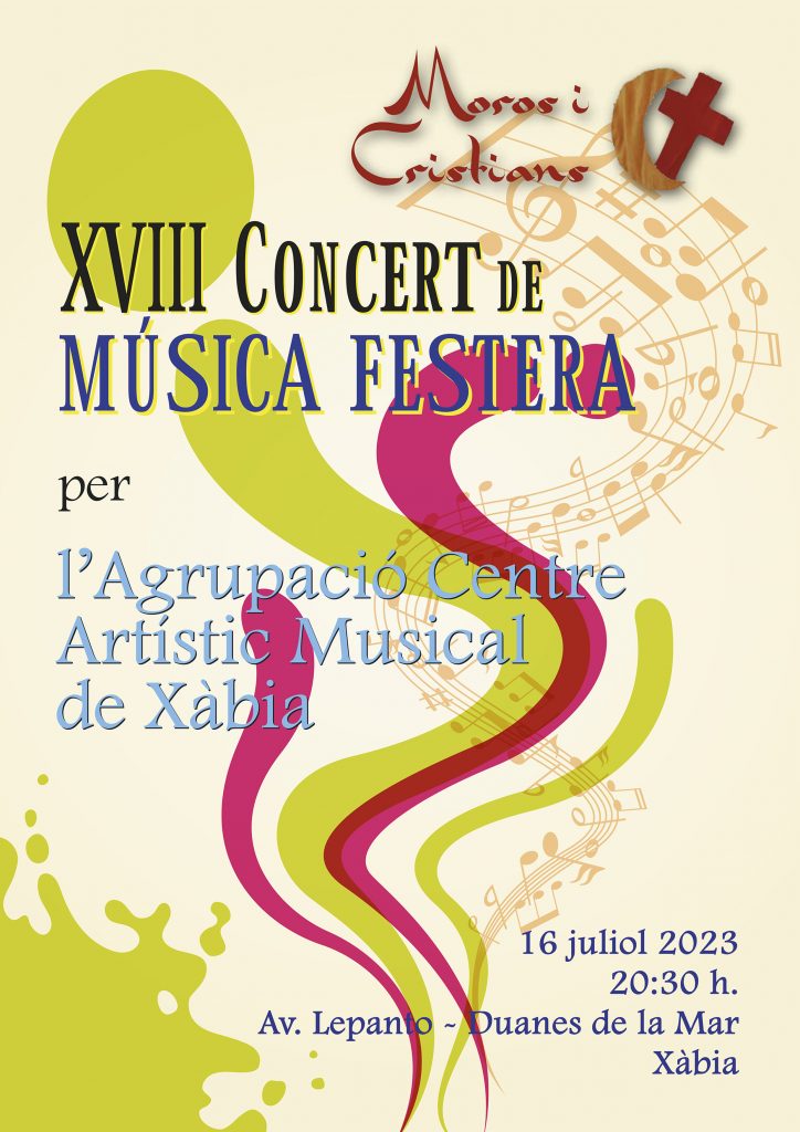 20:30h XVIIII Concierto de Música Festera en la Avda. Lepanto, ofrecido por la Agrupación Centre Artistic Musical de Xabia (Programación aparte)