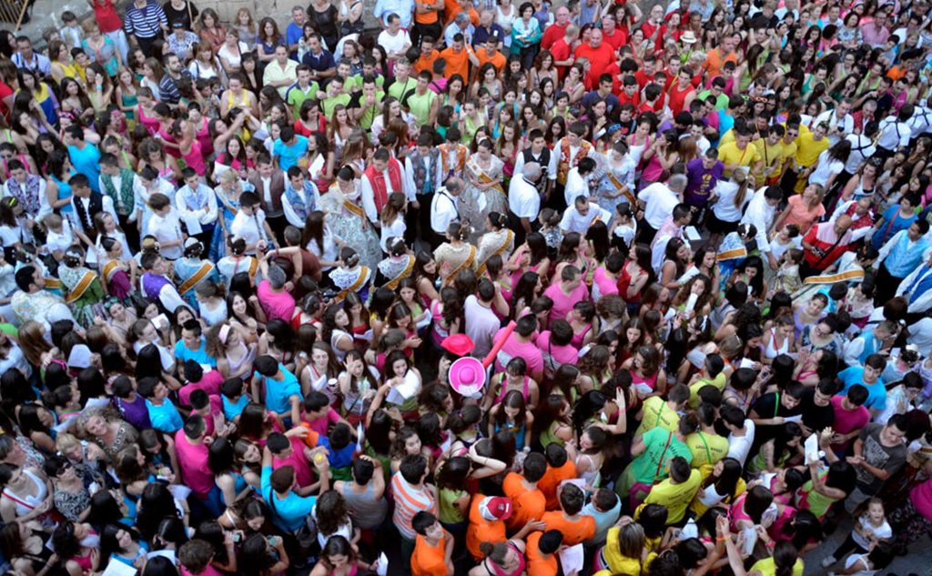 19h Concentración de todas las Quintadas en la Plaza de la Constitución, para dar comienzo al Tumbalea.