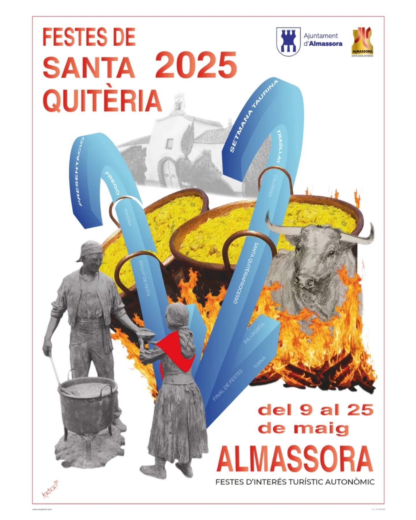 Almassora inicia la cuenta atrás para el inicio de las fiestas patronales en honor a Santa Quitèria que este año se celebran del 9 al 25 de mayo. Este año las fiestas cobran especial protagonismo tras la declaración de Les Calderes, como fiesta de Interés Turístico Autonómico.
