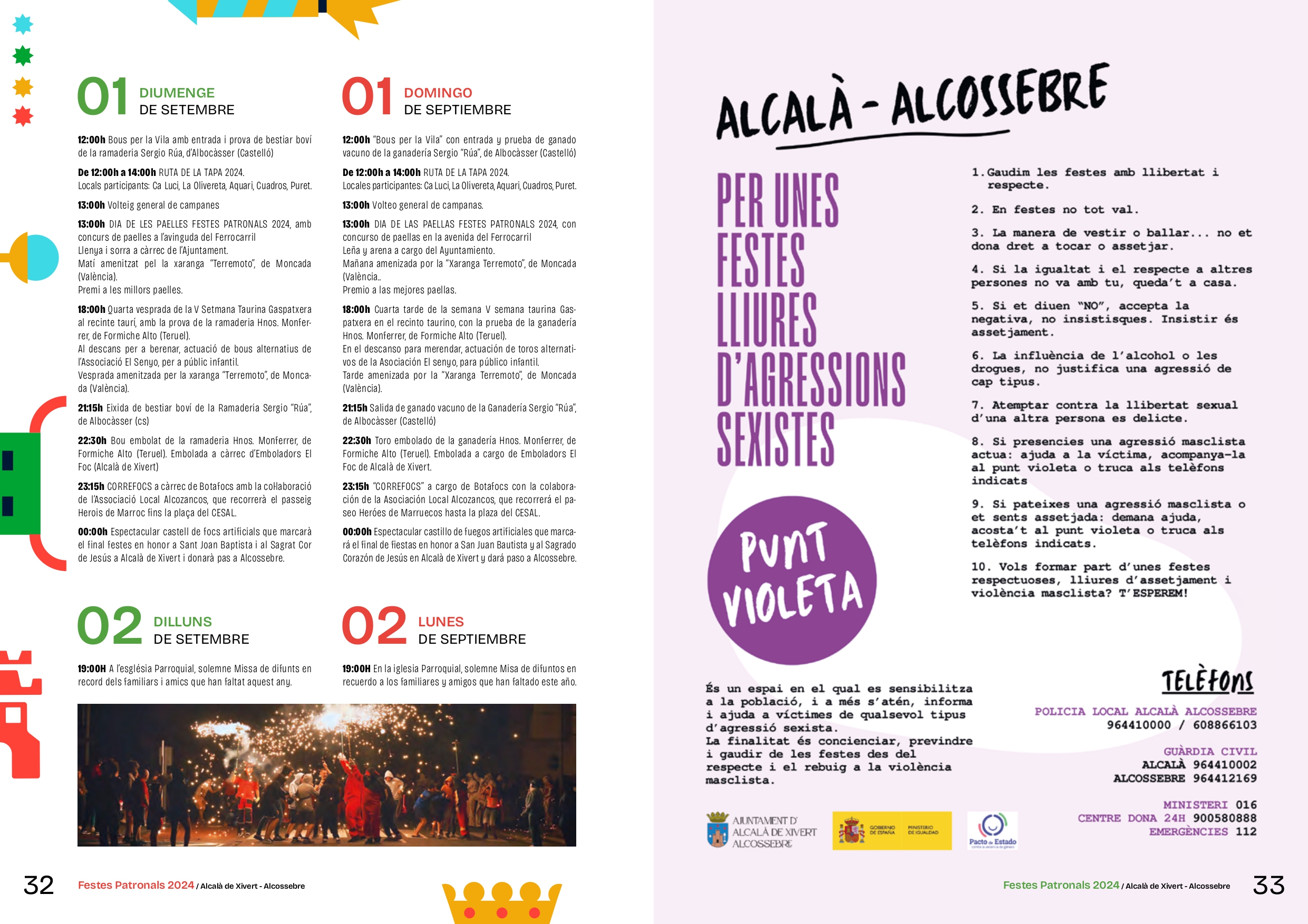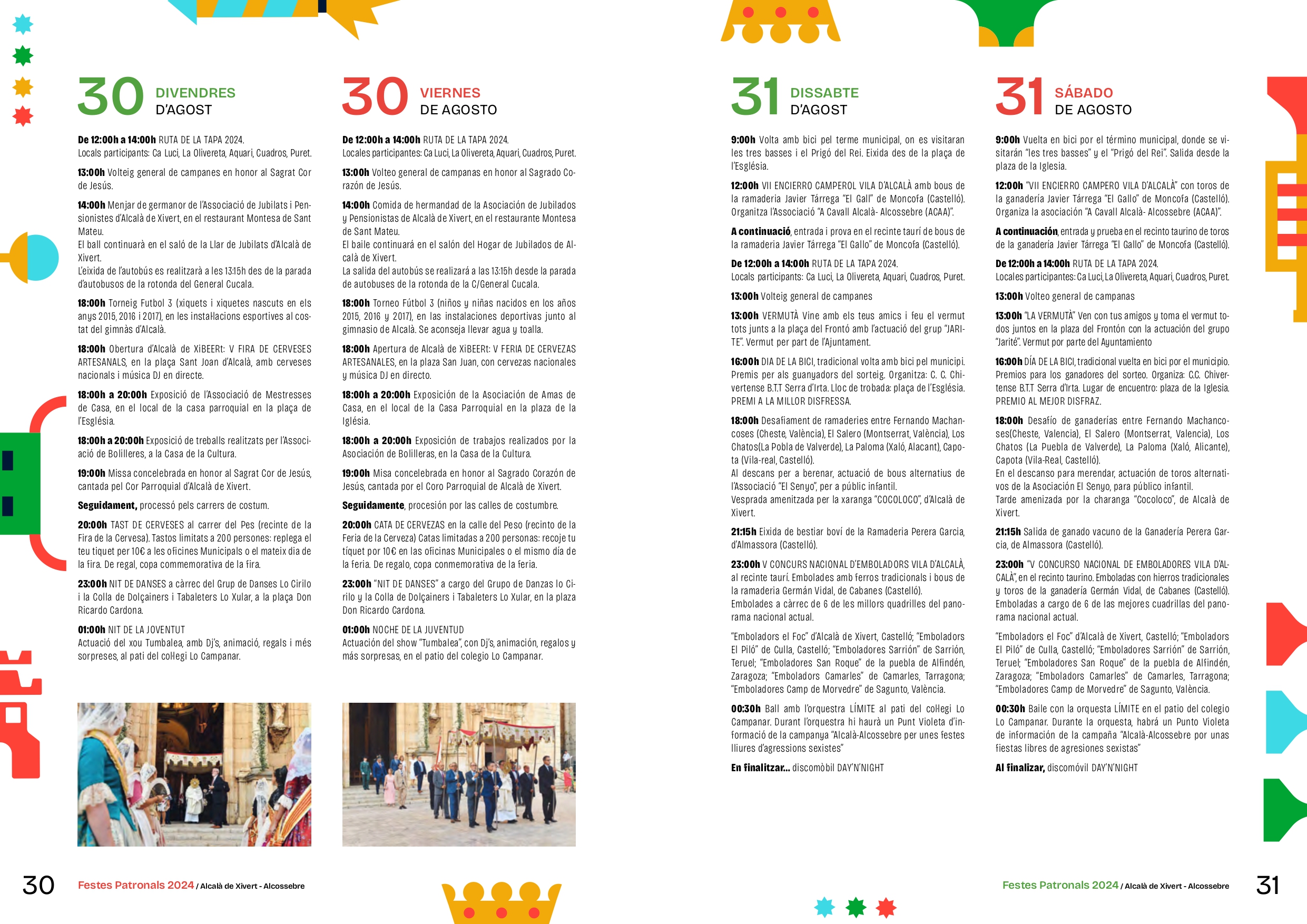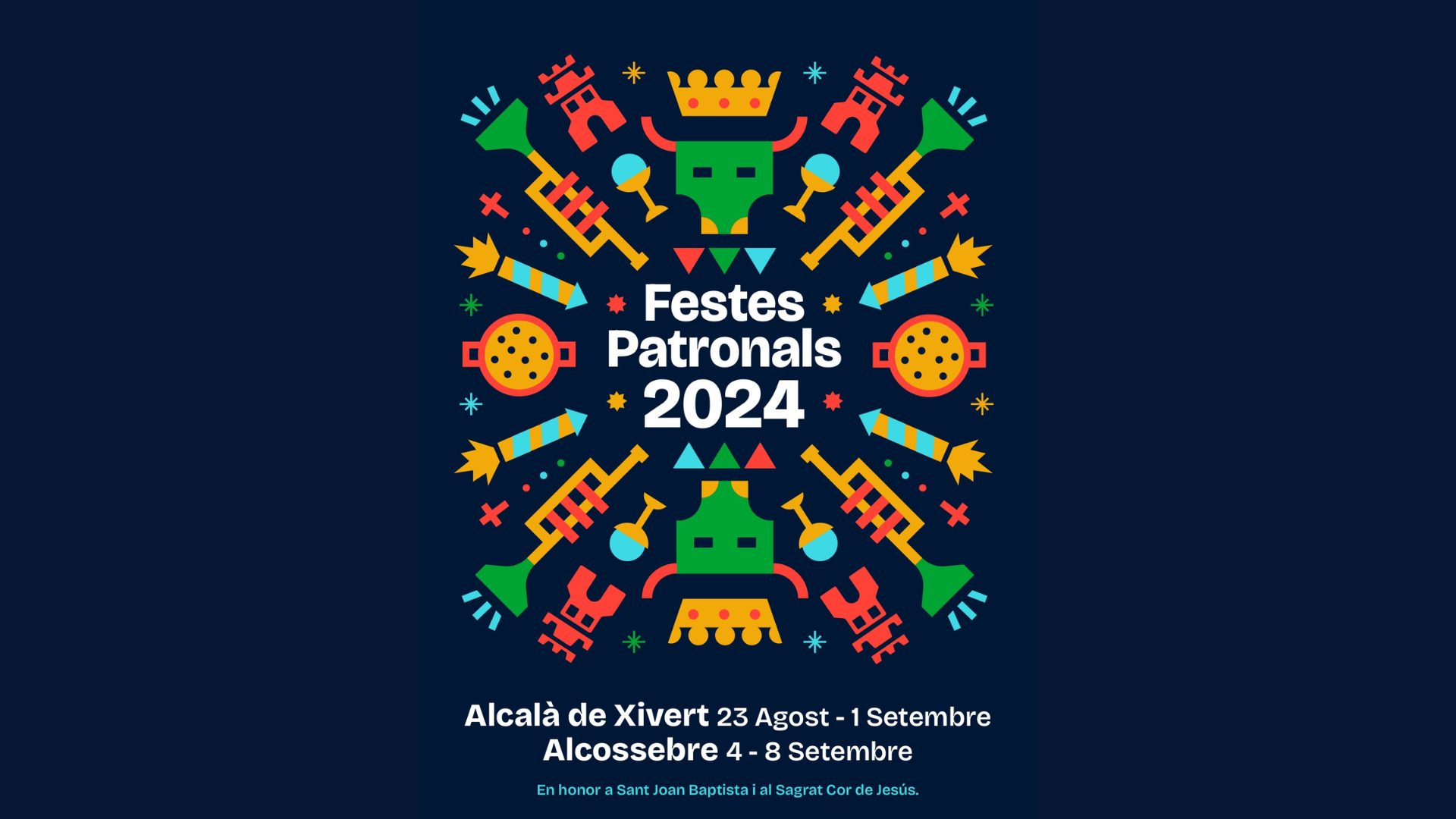 El municipio de Alcalà de Xivert vive sus Fiestas Patronales desde el 23 de agosto hasta el 1 de septiembre en honor a San Juan Bautista y al Sagrado Corazón de Jesús con la Nit de la Xulla como el acto más destacado de su programación.