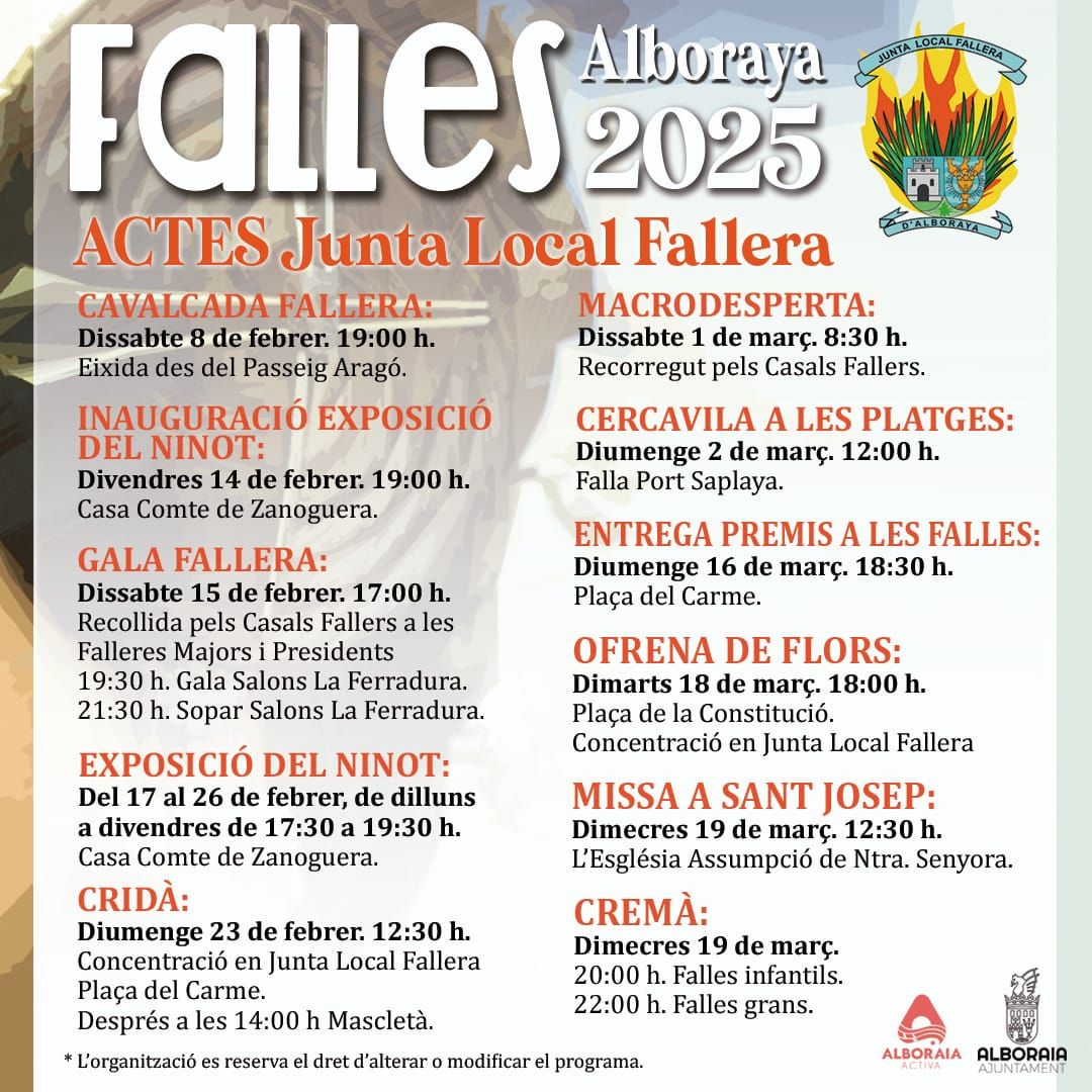 Alboraia esta preparada per a viure les seues Falles 2025. La programació fallera començará este dissabte 8 de febrer amb la Cavalcada Fallera i el próxim divendres será la inauguració de la Exposició del Ninot.