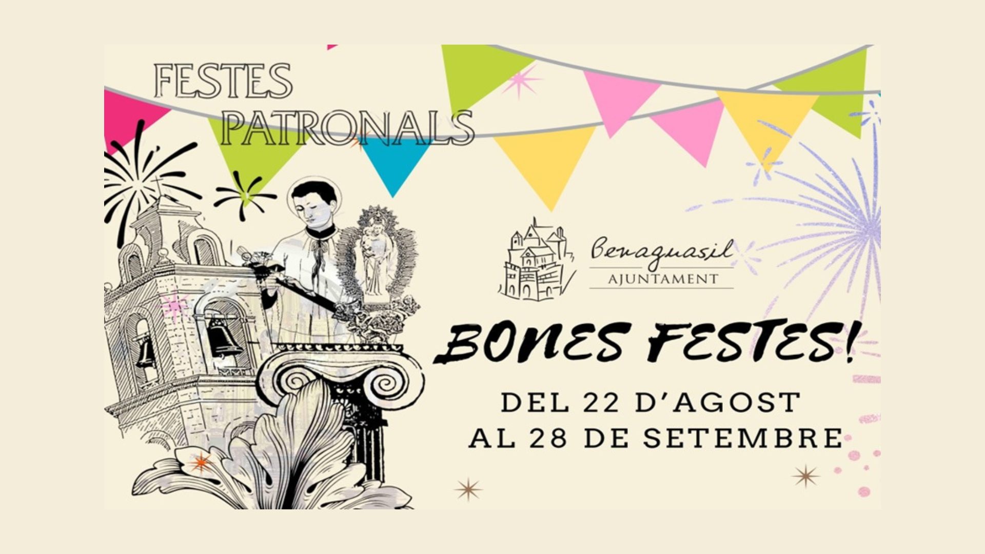 Benaguasil dona inici a les seues Festes Patronals en honor a la Mare de Déu de Montiel. Les festes començaran oficialment el divendres 22 d´agost i finalitzaran el 28 de setembre. Tres setmanes plenes de pólvora, actes, i activitats per a totes les edats, amb música, diversió i emoció.