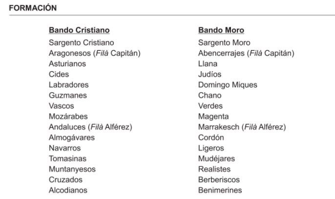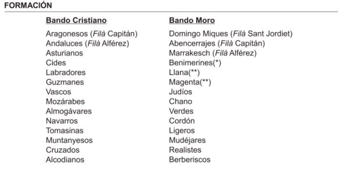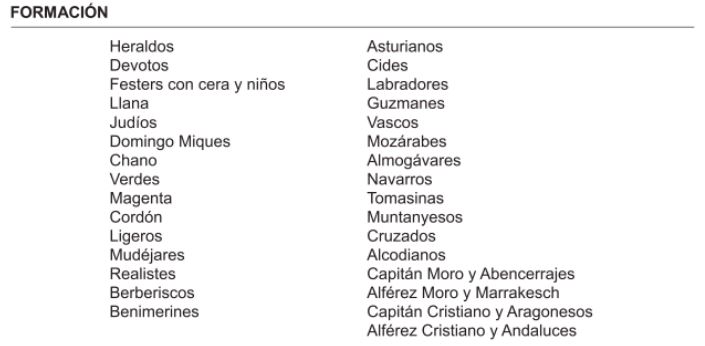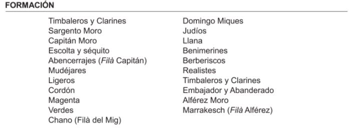 Nota: (*) Esta filà altera su orden de formación por ser el organizador del recibimiento que se ofrece al Sant Jordiet. (**) Estas filaes alteran su orden de formación por ser sus bandas participes de la Misa Mayor.