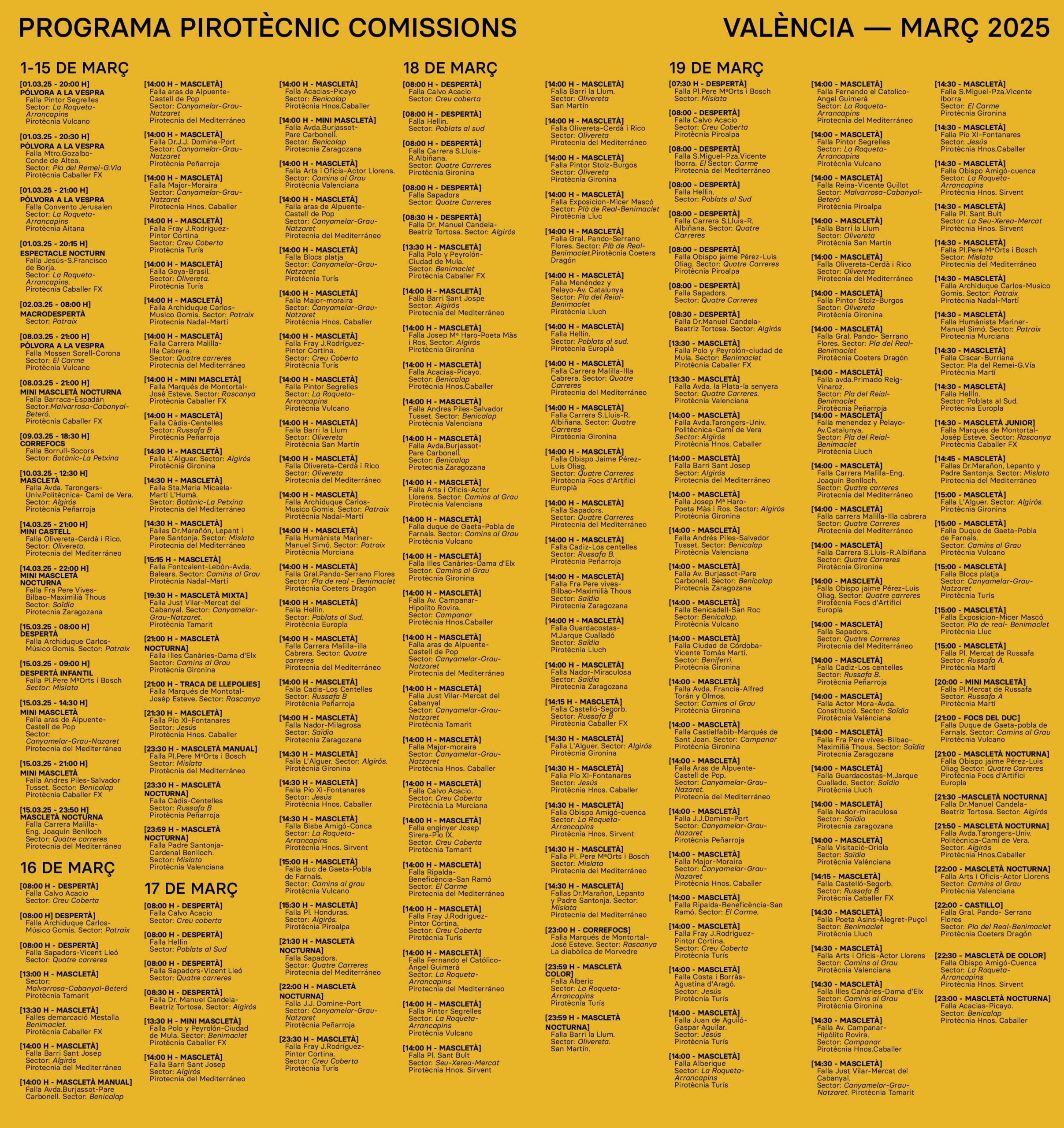 La Junta Central Fallera ha hecho publico el calendario pirotécnico donde están los disparos de las comisiones falleras para las Fallas 2025.