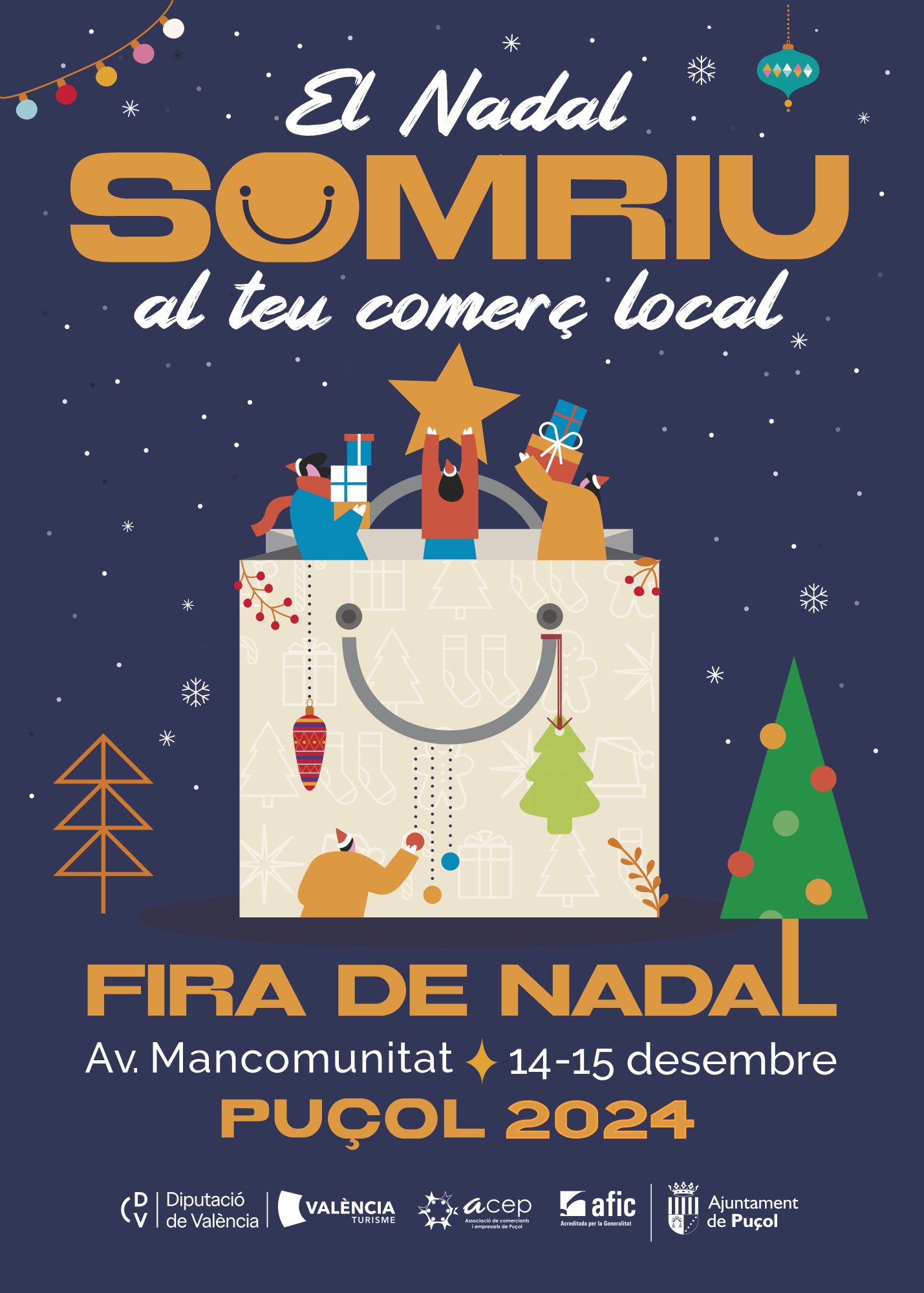 Los días 14 y 15 de diciembre, en la avenida Mancomunitat de l’Horta Nord, se celebra una nueva edición de la Feria de Navidad, organizada por el Ayuntamiento de Puçol con el apoyo de ACEP (Asocaición de Comerciantes y Empresarios), la Diputación de Valencia, la Mancomunitat de l’Horta Nord y AFIC (Agencia para el Fomento de la Innovación Comercial).