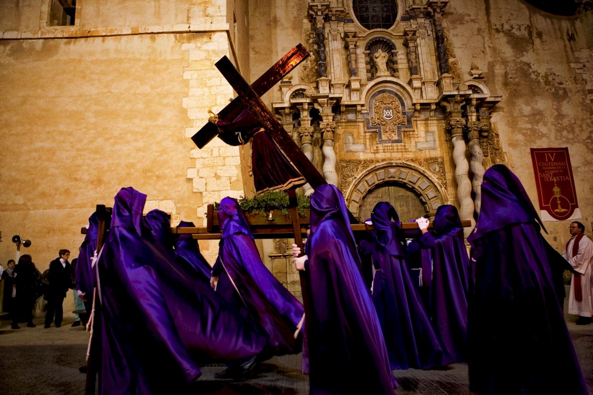 Las calles del centro histórico de Vinaròs se abarrotan para contemplar las solemnes procesiones de las cofradías y sus pasos. La Procesión del Encuentro se considera una de las más especiales y emotivas.