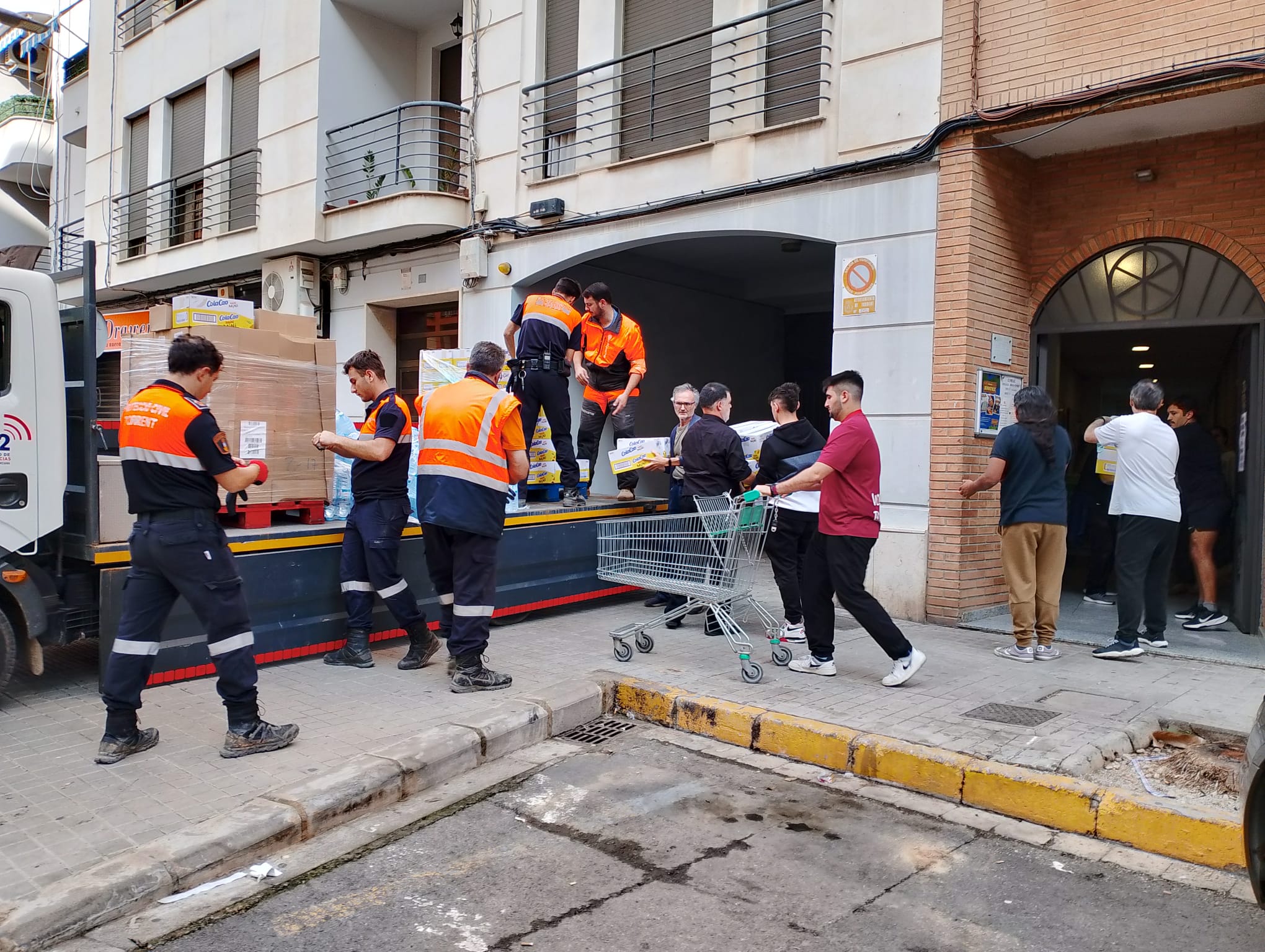A pesar de haber pasado un mes desde el desastre, el trabajo no ha cesado. Los voluntarios continúan con el reparto de alimentos y material solidario almacenado en Torrent para distribuirlo en los municipios más afectados por la riada.
