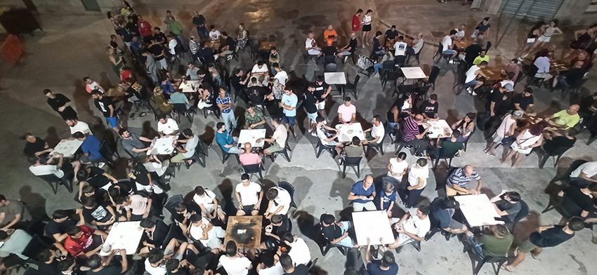 Quan arriba la nit, l’esport és substituït pels jocs de taula a la plaça de la Puríssima. Ahir va començar el primer torn amb els i les participants de truc adults. Hui s’uniran la resta de categories i jocs en una competició que reuneix a vora 300 participants de totes les edats.