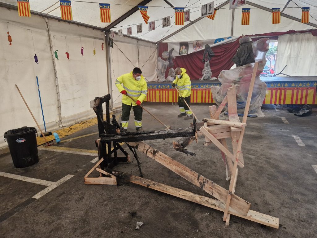 A las 6 de la mañana, un grupo ha entrado en el interior de la carpa de la falla, incendiando los ninots a pocas horas de sacarlos a la calle.