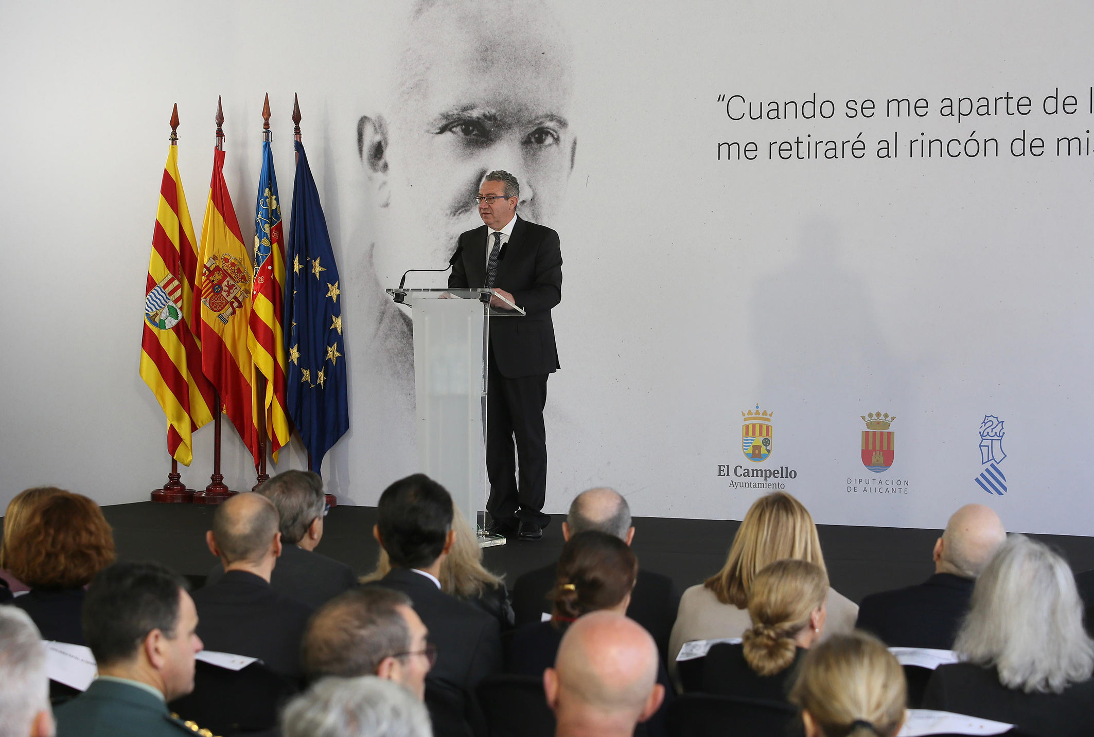 - El presidente de la Diputación, Toni Gaspar, clausura el acto institucional de inhumación del intelectual alicantino, presidido por S.M. el Rey Felipe VI y por el president, Carlos Mazón