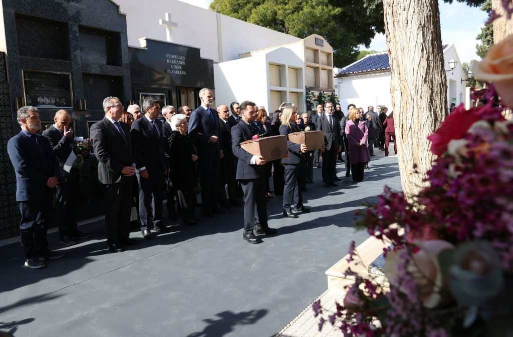 La convocatoria ha contado también con la presencia del president de la Generalitat Valenciana, Carlos Mazón, institución que ha sufragado los costes de exhumación y repatriación de los restos mortales del intelectual hasta Alicante, así como del alcalde de El Campello, Juan José Berenguer, como administración anfitriona, el ministro de Política Territorial y Memoria Democrática, Ángel Víctor Torres, además de autoridades civiles y académicas y familiares de Rafael Altamira.