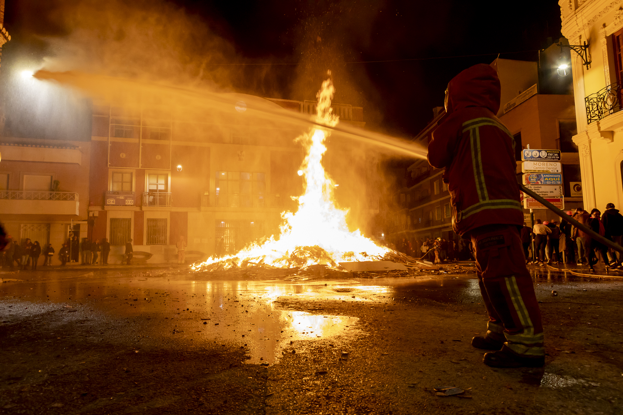 A boca de nit, a les 21:00 h, arribarà el moment de la cremà de la foguera enfront de l’Ajuntament, en honor a Sant Antoni. Després de donar-li les tres voltes de rigor al foc, començarà la Coetà. Milers de coets, disparats en el recinte tancat instal·lat en el carrer Magdalena, il·luminaran el cel del municipi.