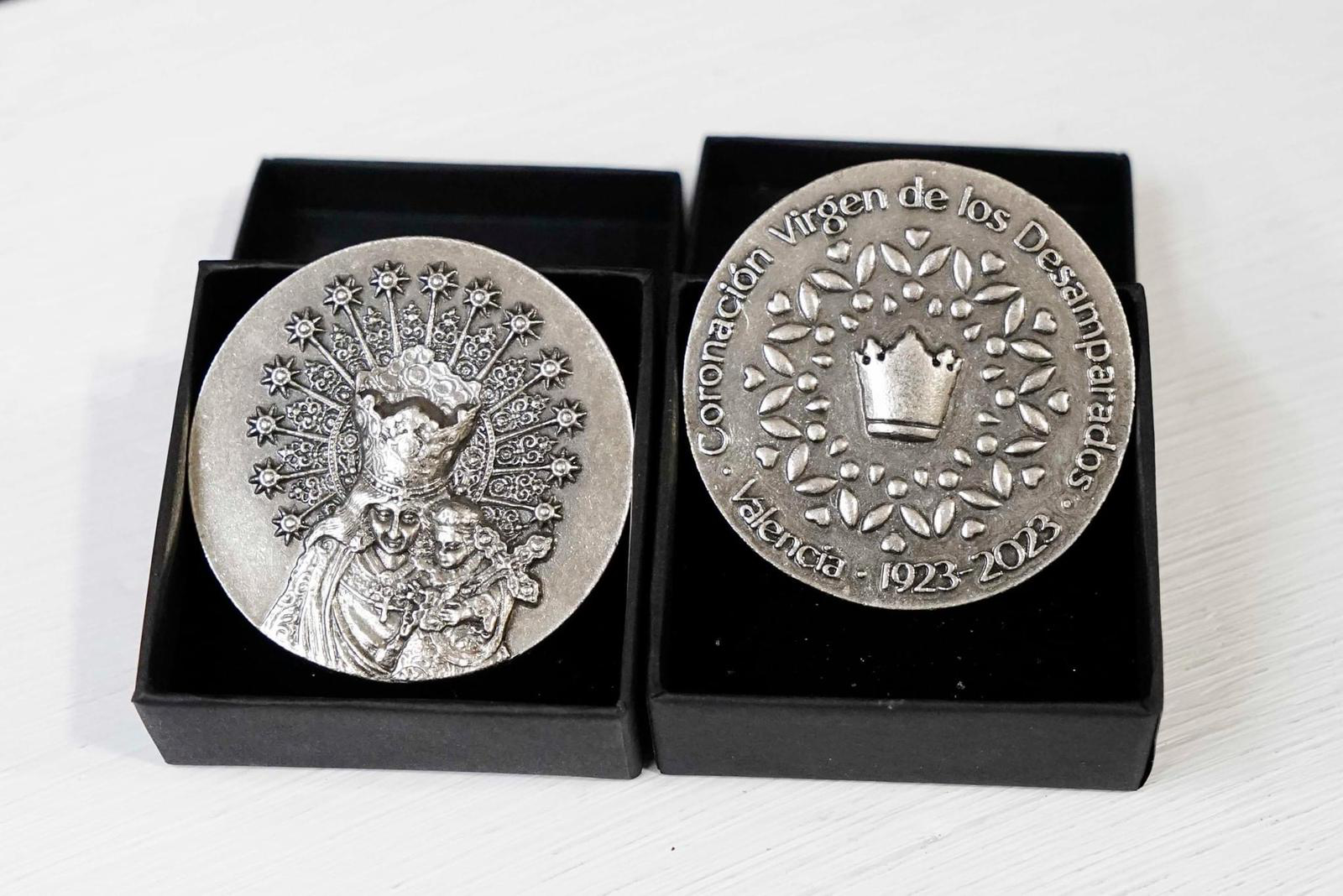 La Basílica de la Virgen tiene ya disponible, en su tienda física y en su tienda on line (a la que se puede acceder a través del enlace https://viasacra.es/tienda-basilica-virgen-desamparados/) una medalla conmemorativa del Centenario de la Coronación realizada en material de zamac (aleación de zinc, aluminio, magnesio y cobre).