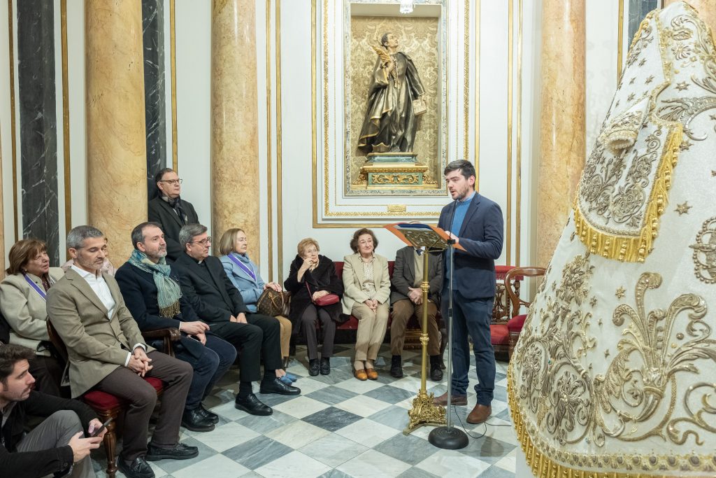 La Basílica de la Virgen de los Desamparados ha presentado hoy, viernes, la restauración del llamado manto del “Capellán Mata”, realizado en 1915 por voluntad testamentaria del que fue capellán mayor del templo, Germán Mata, con el que la imagen original de la Mare de Déu regresó de nuevo a su Basílica, en 1939, tras permanecer oculta durante la contienda en el edificio consistorial de la ciudad.