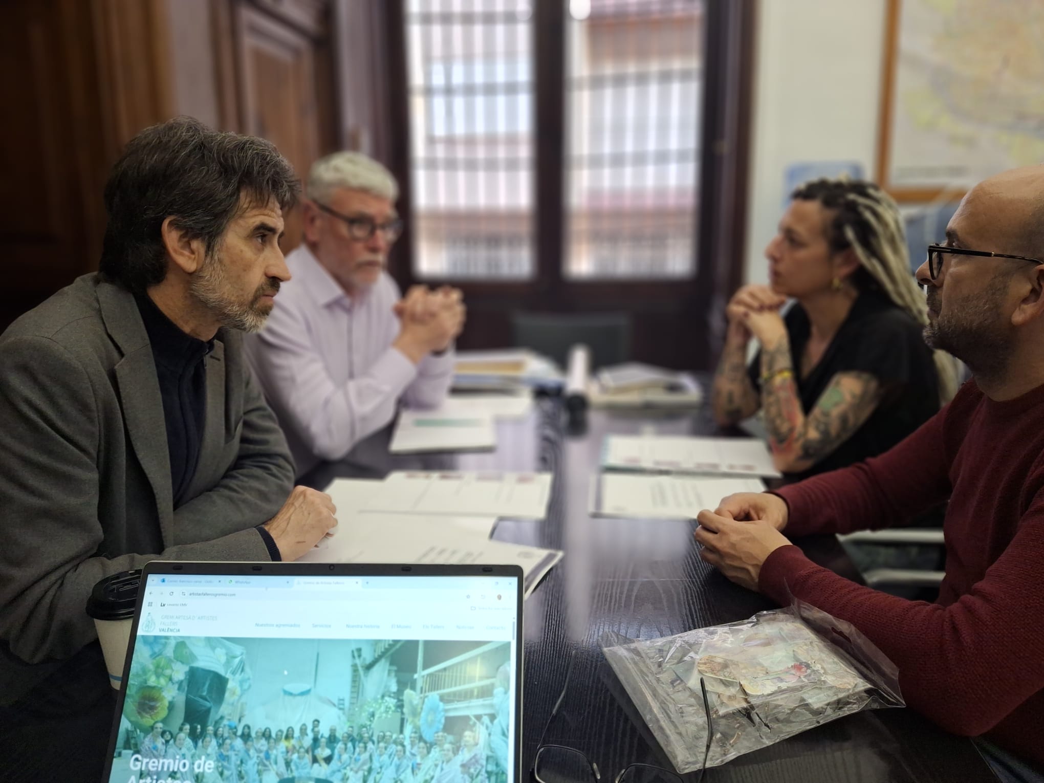 El maestro mayor del Gremio de Artistas Falleros, Vicente Julián Pastor, y la vicemaestra, Gio Torres, se han reunido con el concejal de Cultura, José Luis Moreno, y han abordado nuevas vías de colaboración como la cesión de ninots a espacios museísticos de la ciudad, la celebración de exposiciones, charlas y conferencias en los citados lugares además de poner en marcha distintos proyectos en los museos. En la reunión ha estado presente el jefe de sección de Museos, Javier Martí, quien ha abierto también la puerta a realizar actos como elegir el artista del mes o poner en valor la memoria de los artistas falleros.