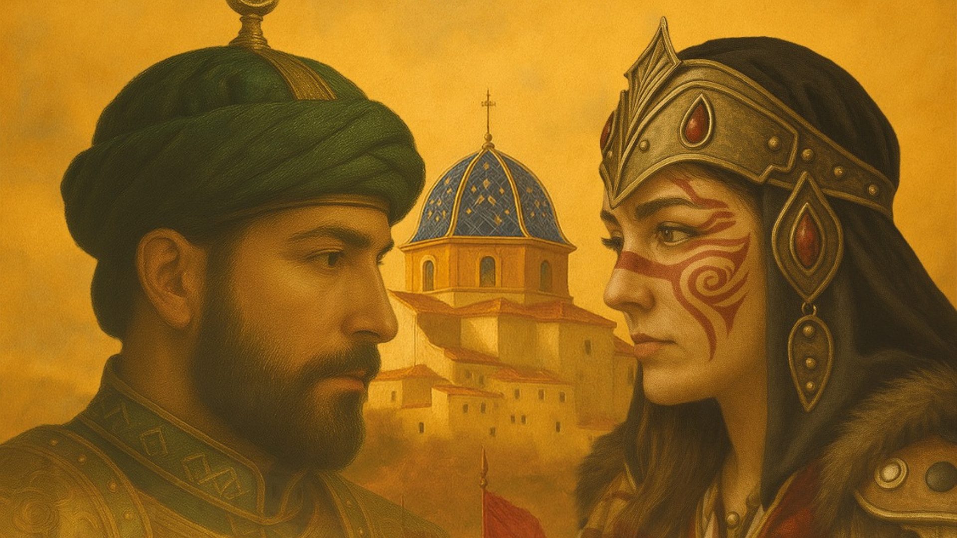 Por lo que hace a la composición del cartel, Barber señalaba, “he querido crear una escena épica y simbólica que represente lo que somos como pueblo, un cruce de historias, miradas y tradiciones. En el centro se encuentra nuestra cúpula azul, que es nuestra identidad y nuestra casa y a su alrededor dos personajes que encarnan las dos culturas que celebramos, el Bando Moro y el Bando Cristiano, en una escena de confrontación pero con respeto y equilibrio”.
