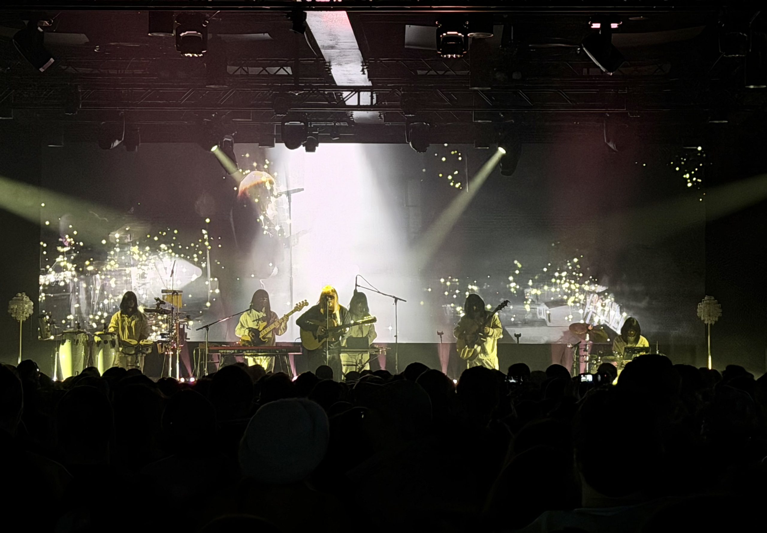 El show, un auténtico vaivén de emociones que se mueve estéticamente entre lo performativo y lo íntimo, también ha incluido algunos de los primeros lanzamientos del madrileño, como “Brujita”, “Cell” o “Gata”, uno de los himnos experimentales de su colectivo Rusia-IDK. En “Kinki Fígaro”, Rusowsky ha evidenciado la formación musical clásica de la que dispone, a través de una composición que se deconstruye, pasando de un sonido orquestal a una mezcla de hip-hop y electrónica. “Mwah” se ha iniciado con un Rusowsky solo al piano, del que se ha desprendido hacia la mitad de la canción. En “Bby Romeo” se hace especialmente evidente su apuesta por el pop experimental, pero ha sido con los acordes de su viral “malibU” cuando se ha producido el momento de mayor éxtasis colectiva.
