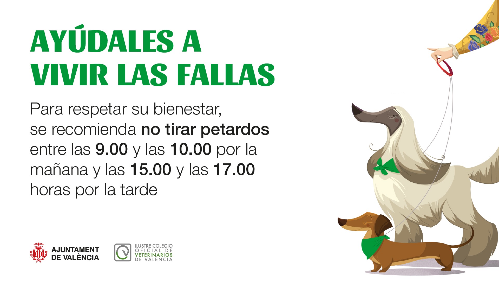 Además, María José Catalá ha recordado que el bando fallero establece dos franjas horarias libres de petardos para favorecer los paseos tranquilos de las mascotas. En estas dos franjas, establecidas de 9 a 10 horas de la mañana y de 15 a 17 horas de la tarde, pide a las comisiones falleras y a la ciudadanía en general que no lance material pirotécnico. Igualmente, el consistorio pide a las comisiones falleras que cuelguen la campaña en la zona de fuegos de cada comisión y, por primera vez, incluye este requisito en los premios Sant Antoni Abat.