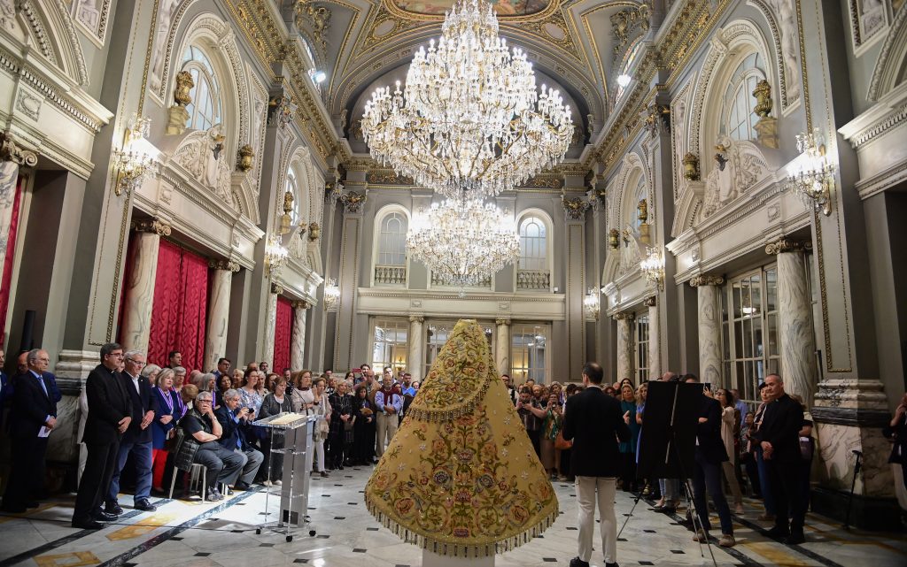 El Ayuntamiento de València se suma, en nombre de toda la ciudad, a la celebración de la festividad de la Virgen de los Desamparados, que se conmemora el próximo fin de semana, y que este año tiene un significado especial con motivo del centenario de la coronación pontificia de la imagen, que tuvo lugar el 12 de mayo de 1923. El alcalde de València, Joan Ribó, ha presidido este martes la presentación del manto que lucirá la imagen el próximo domingo, un ajuar restaurado a partir del terno arzobispal utilizado en la segunda coronación de la Virgen.