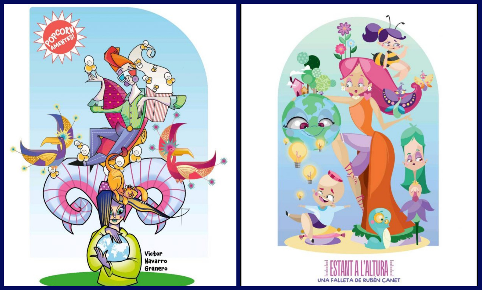 El artista Víctor Navarro es el encargado de realizar la falla grande con el lema Popcorn Amentes! y que militará en la sección 3ªB y la falla infantil es del artista Rubén Canet con el lema Estant a l´altura y que militará en la sección 12ª.