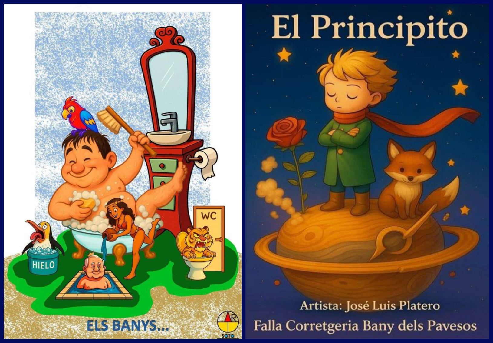 El artista Agustín Torralba es el encargado de realizar la falla grande con el lema Els banys… y que militará en la sección 5ªC y la falla infantil es del artista José Luis Platero con el lema El Principito y que militará en la sección 16ª