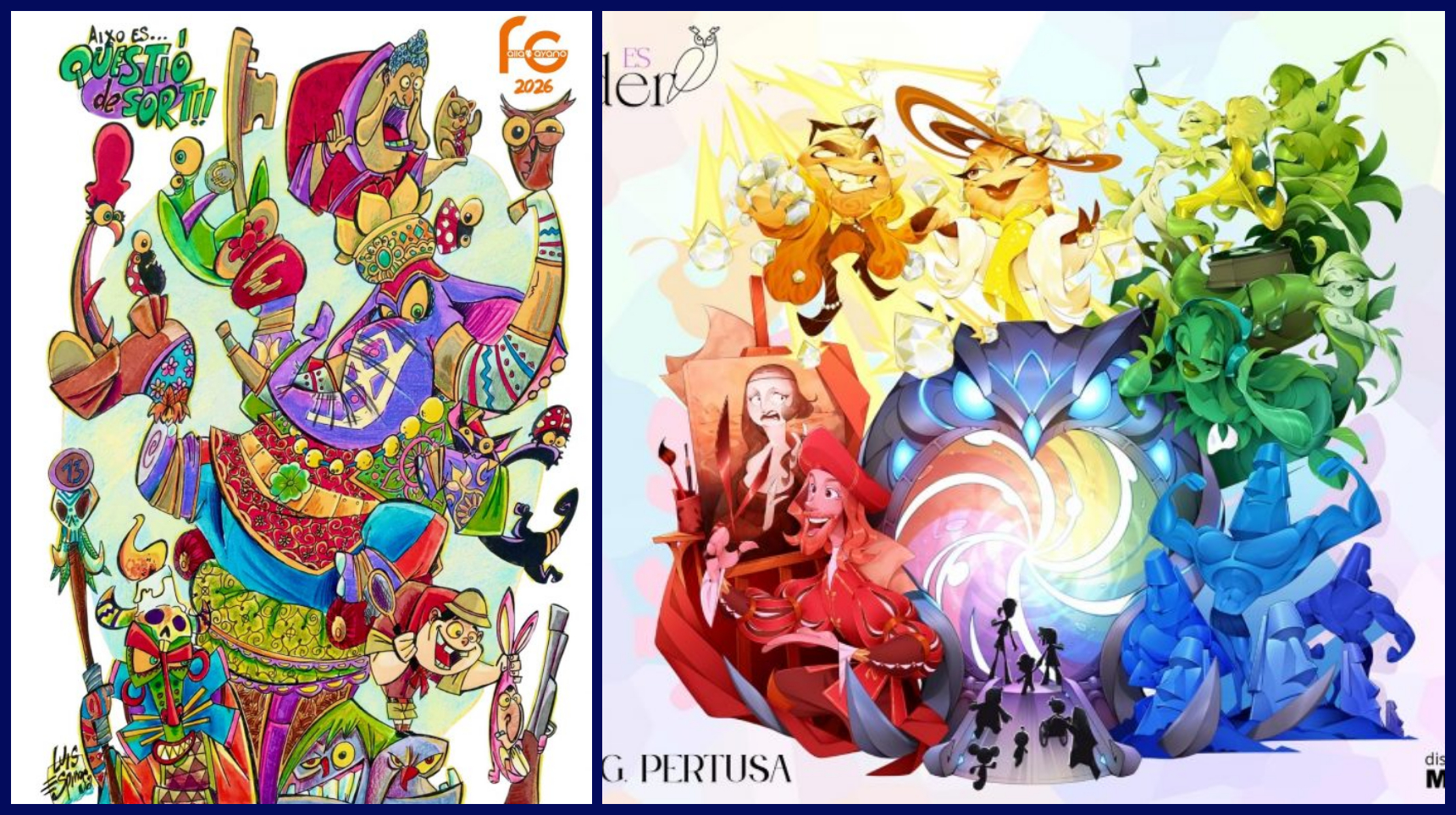 El artista Luis Espinosa es el encargado de realizar la falla grande con el lema Aixó és…. qüestió de sort!!! y que militará en la sección 1ªB y la falla infantil es del artista Raúl García Pertusa con el lema Saber es poder y que militará en la Sección Especial.