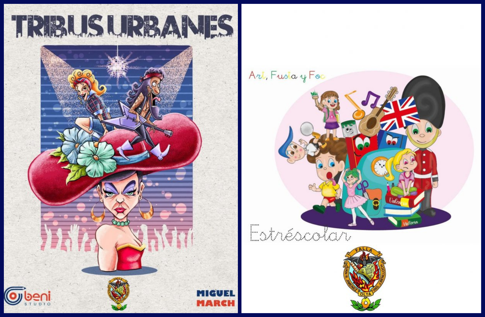 El artista Miguel March es el encargado de realizar la falla grande con el lema Tribus Urbanes y que militará en la sección 5ªA y la falla infantil es del artista Art, Fusta y Foc con el lema Estréscolar y que militará en la sección 14ª.