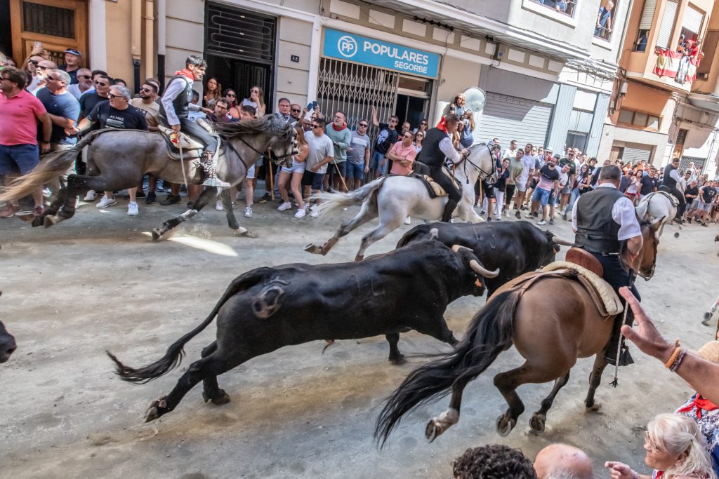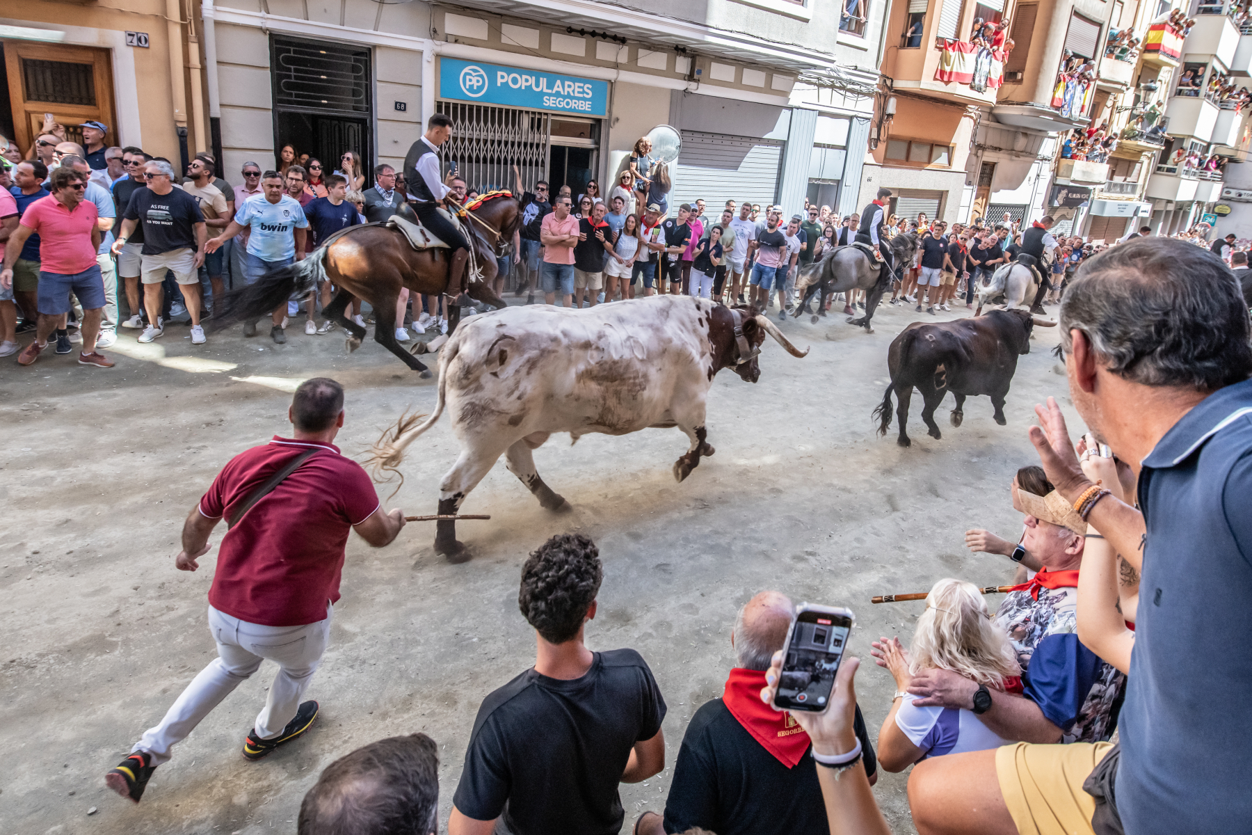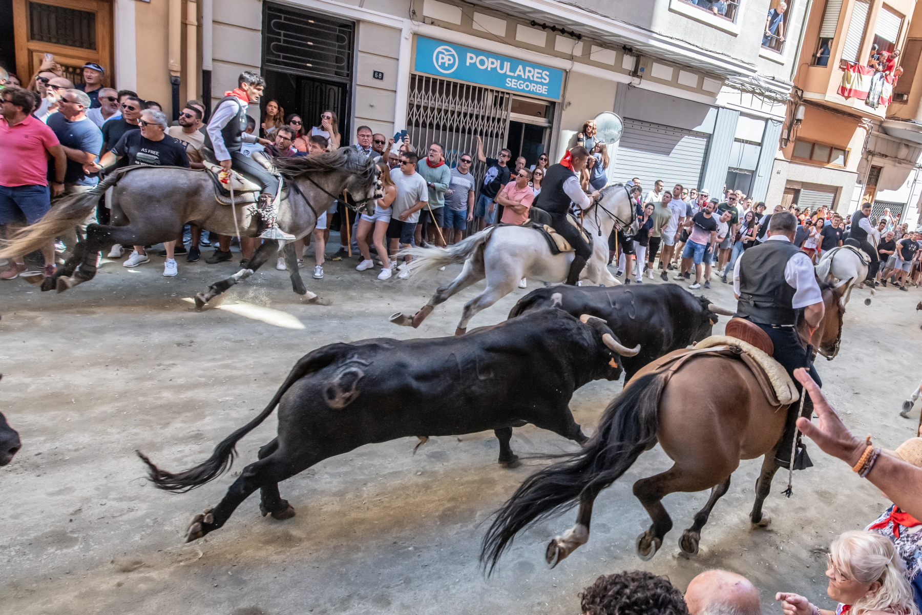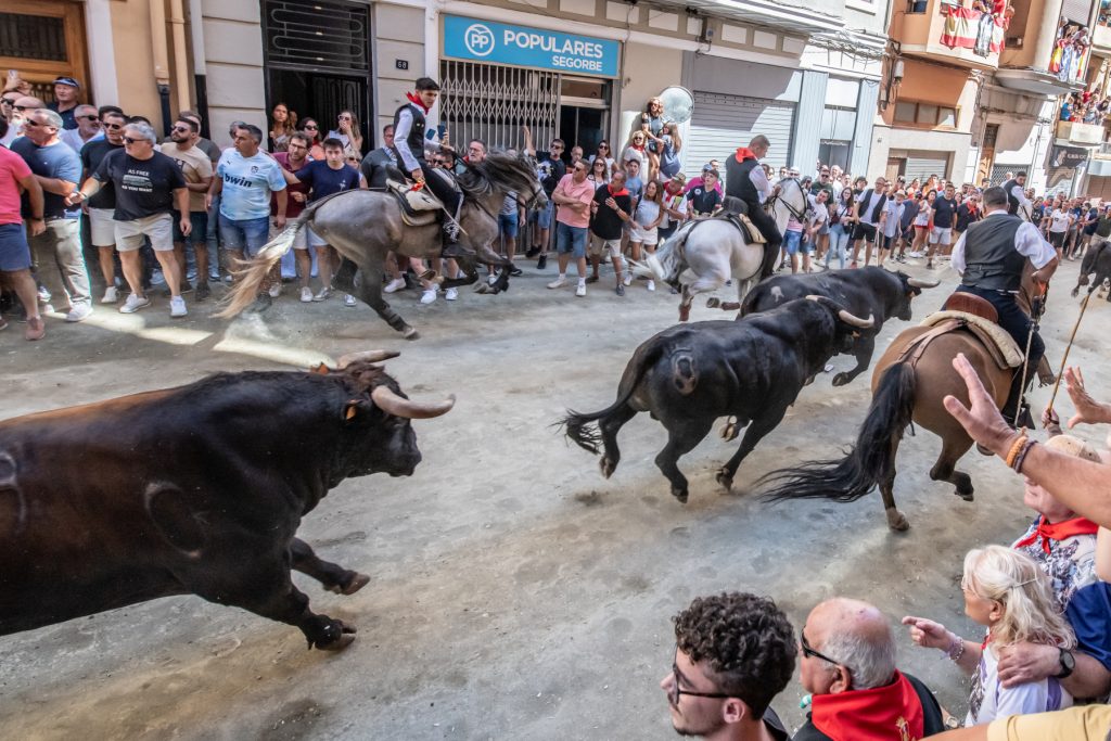 Este domingo 15 de septiembre se celebra el último día de la semana de festejos taurinos de Segorbe. Con gran éxito de público, la Entrada ha comenzado con un toro que se adelantaba a la manada, pero que ha sido frenado por los jinetes, quienes han arropado un día más a las reses de Germán Vidal con maestría hasta la plaza de la Cueva Santa. Dos toros han sido los que se han quedado en el toril, que ha cerrado el ganadero, para mayor seguridad.