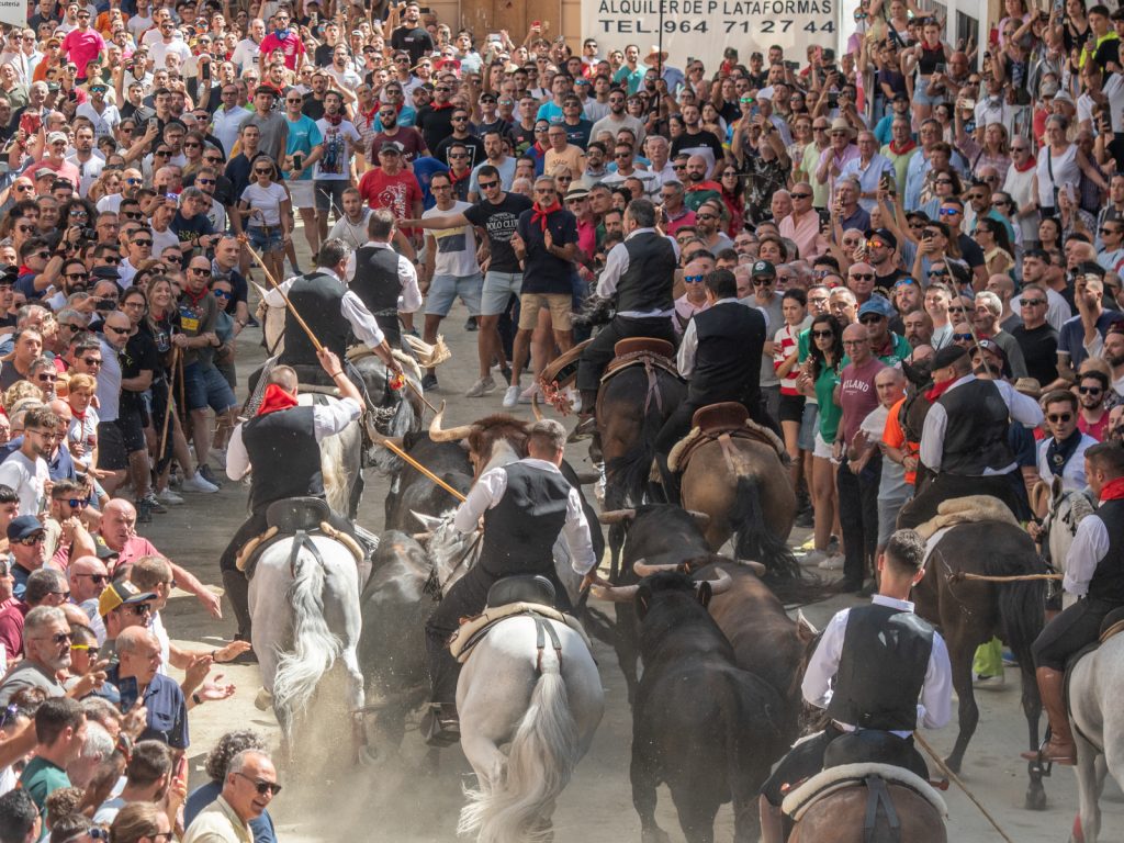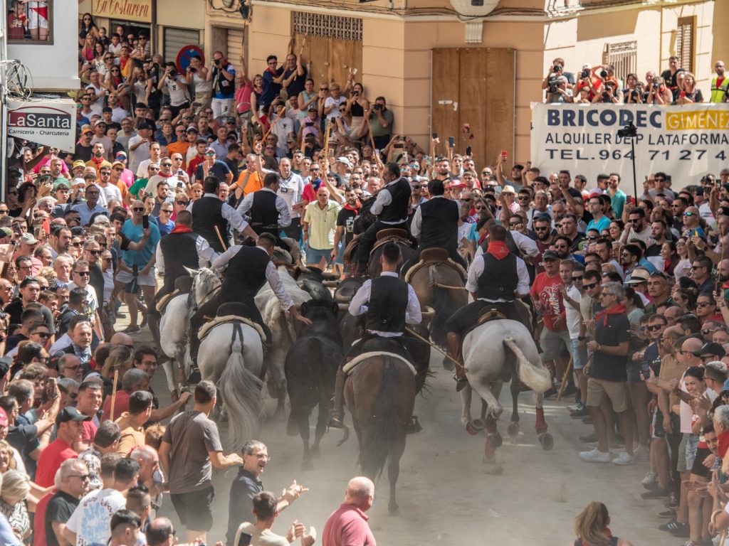 • Los caballistas de la cuarta Entrada de Toros y Caballos de Segorbe de 2024 han vuelto a conducir con gran velocidad y maestría a la manada en una carrera limpia y sin incidentes. Con una duración de 45 segundos, la Entrada ha contado con abundante expectación. Hoy la ciudad ha recibido la visita de Carlos Mazón, presidente de la Generalitat Valenciana, entre otras muchas autoridades