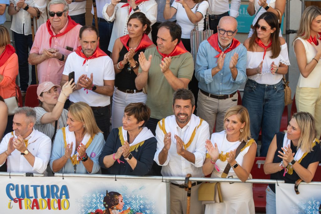 En esta cuarta jornada de Entrada, la alcaldesa, Mª Carmen Climent, y la corporación municipal han estado acompañados en el palco por Carlos Mazón, presidente de la Generalitat; Susana Camarero, vicepresidenta del Consell; Salomé Pradas, consellera de Justicia e Interior; Miguel Barrachina, Conseller de Agricultura, Ganadería y Pesca; Marta Barrachina, Presidenta Diputación Castellón; Alberto Fabra, expresidente de la Generalitat Valenciana; Jaume Llorens, senador del PP; Vicente Tejedo, secretario autonómico de Agricultura, Agua, Ganadería y Pesca; Susana Fabregat, delegada del Consell; Juan Francisco Llorca, sindic GPP y secretario general del PPCV; Adoración Llop, Luis Martínez, Beatriz Gascó, Salvador Aguilella, Nieves Martínez, Wenceslao Alós y Candela Anglés, diputados autonómicos del PP; Francisco Soler, director general de Atención a las Víctimas y Acceso a la Justicia; José Luis Díez, director general de Proyectos de la Generalitat Valenciana; Mª Àngels Ramón-Llin, directora general de Producción Agrícola y Ganadera; Inmaculada Ibor, subdirectora general de Agricultura y Ganadería, y Susana Fernández, directora territorial de Castellón.