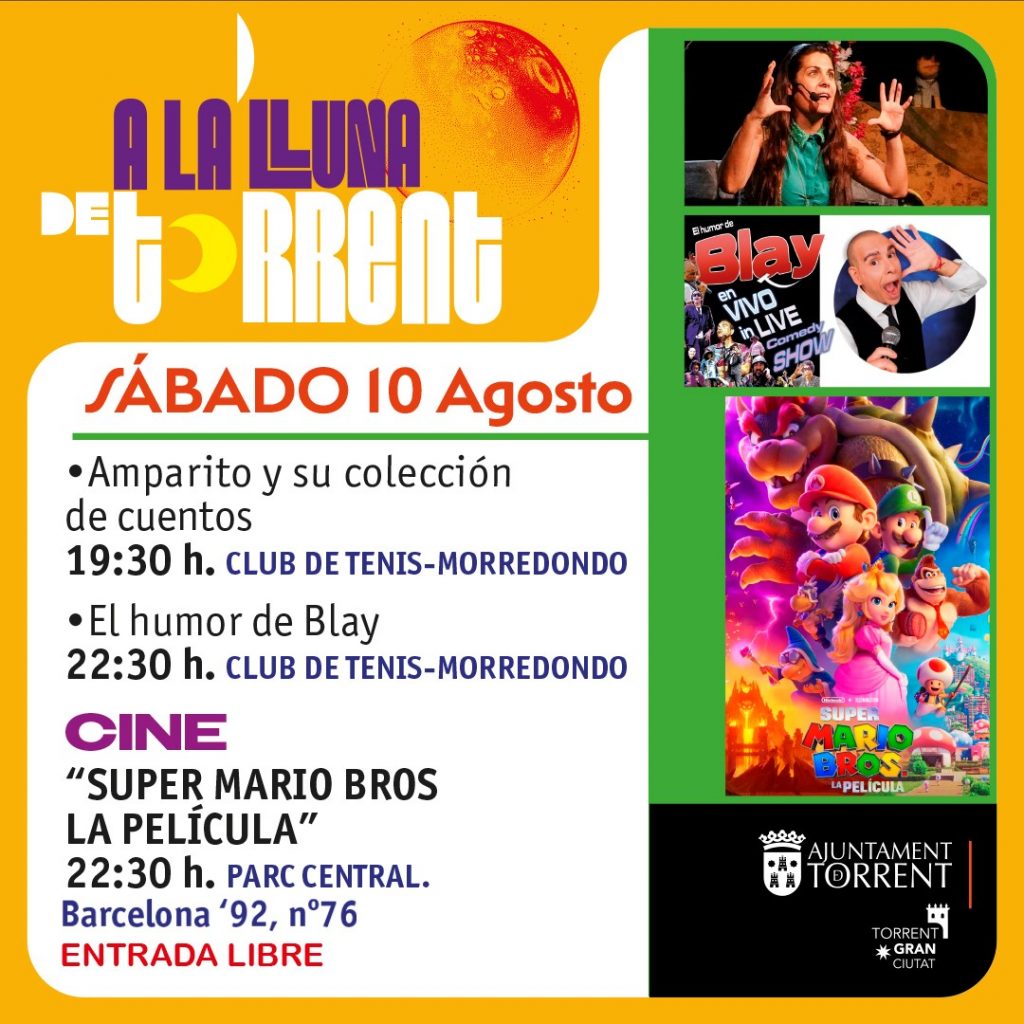 Y para finalizar el segundo fin de semana tan intenso de “A la Lluna de Torrent”, y dentro de la serie ‘Cinema a la Lluna’, a las 22:30 h. en Parc Central. Avda. Barcelona 92, 76 (junto al Consum), se proyectará el film “Super Mario Bros. La Película”, donde mientras trabajan en una avería subterránea, los fontaneros de Brooklyn, Mario y su hermano Luigi, viajan por una misteriosa tubería hasta un nuevo mundo mágico. Pero, cuando los hermanos se separan, Mario deberá emprender una épica misión para encontrar a Luigi. Con la ayuda del champiñón local Toad y unas cuantas nociones de combate de la guerrera líder del Reino Champiñón, la princesa Peach, Mario descubre todo el poder que alberga en su interior.