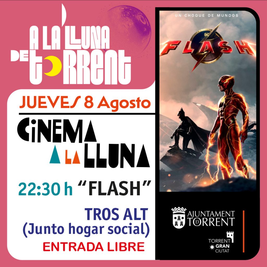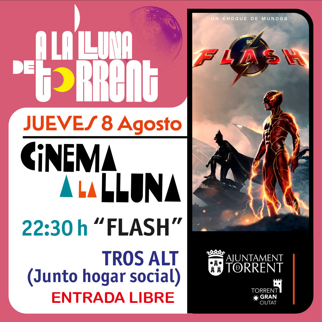 Comenzamos el jueves con “Cinema a la Lluna”, a las 22:30 h en Tros Alt, C/ Concepción Arenal (junto a Hogar Social), con la proyección de la Película “Flash”, donde Barry Allen, utiliza sus superpoderes para viajar en el tiempo con la intención de salvar a su madre, sin embargo, este acto tiene consecuencias imprevistas que alteran el futuro.