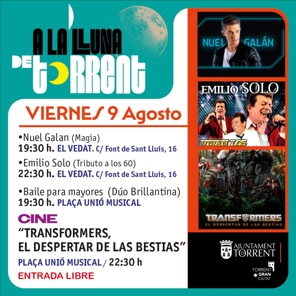 Torrent vivirá con intensidad su segundo fin de semana repleto de espectáculos, actuaciones, música, baile para mayores, cuentos para niños y sesiones de cine a la “Lluna de Torrent”.