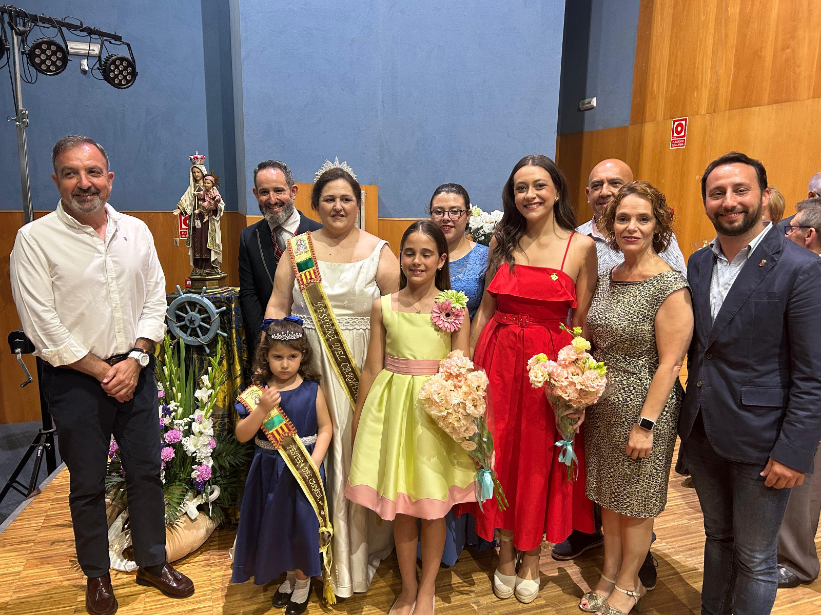 Así pues, el Presidente de les Festes del Carmen, Jorge Segarra Forcada ha presidido el escenario para imponer la banda que acredita a las Festeras y a la Clavariesa, así como también han sido presentadas las damas: Sherezade Garcia Valera, Elisabeth Sanz Márquez, Carmen Hoyos García, Claudia Ortiz de Zayas, Vanesa de Zayas Picazo, Ani Peláez Pérez, Sara Beltrán Lujan, Ana Hernández Pelàez.