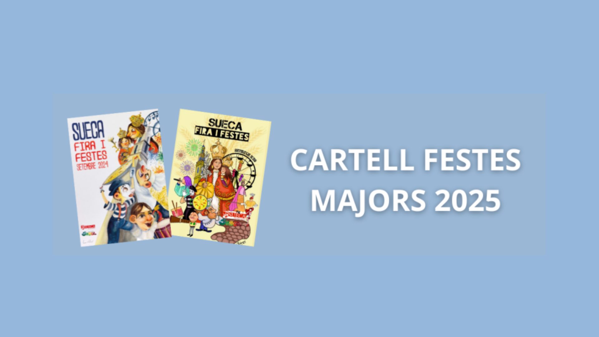 L’Ajuntament de Sueca ha convocat el concurs per a triar el cartell anunciador de les Festes Majors 2025. El termini per a la presentació de sol·licituds comença hui divendres, 13 de juny, i finalitzarà el 27 de juny. Podran participar totes les persones que ho desitgen, a títol personal, presentant un màxim de dos cartells que hauran de ser originals i inèdits i contindre el text SUECA, FIRA I FESTES SETEMBRE 2025, a més de reservar una zona per al logotip de l’Ajuntament de Sueca que es podrà descarregar en la web municipal www.sueca.es .