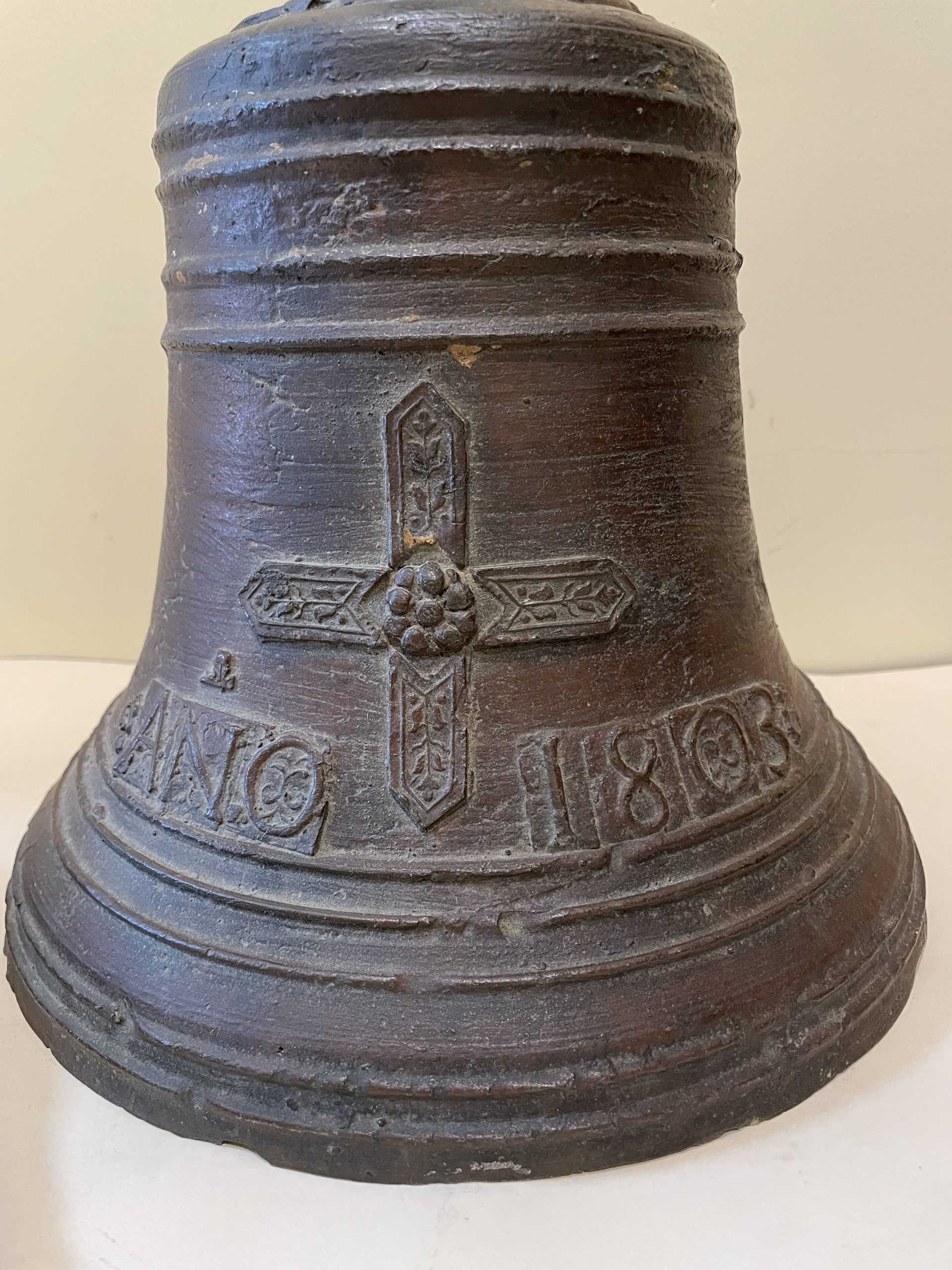 La campana té gravat 1803, l’any en què va ser fosa, una circumstància que es repetix en les cinc campanes de la torre de l’església de Nostra Senyora de Sales, per la qual cosa l’especialista, Francesc Llop, assegura que va ser creada pel mateix artesà, Cristóbal García. Es tracta d’una campana de crida que s’utilitzava per a convocar als frares franciscans als seus quefers diaris. Per la seua part, l’escultura de Jesús Diví és una peça del segle XX, d’autor desconegut. La seua arribada al Convent es relaciona amb l’arribada de les monges de la congregació de les Filles de la Caritat per a crear l’Hospital Maternal.