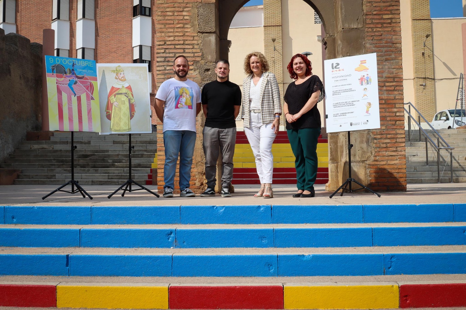El Ayuntamiento de Torrent ha dado a conocer la programación para el 9 de Octubre y el Día de la Hispanidad 2024 en el Patio Rosa. El lugar, que está siendo objeto de una reforma, luce desde esta semana en sus escaleras los colores que representan la Real Senyera y la bandera de España, en un guiño visual a la importancia de estas fechas. La alcaldesa Amparo Folgado, acompañada por miembros de su equipo de gobierno, ha destacado que durante la presentación que “para este equipo de gobierno son muy importantes nuestras señas de identidad, nuestra cultura y nuestras tradiciones, por eso dedicamos grandes esfuerzos por ofrecer una programación cultural a la altura de esta Gran Ciudad”.