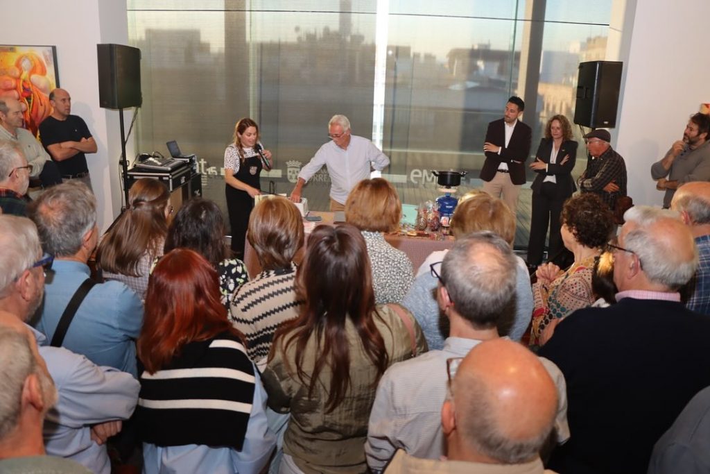 La Sala EMAT se llenó de aromas, emociones y color en una inauguración que trascendió el formato tradicional para convertirse en un auténtico homenaje sensorial. Además, contó con la demostración en vivo a cargo de Patricia Andreu, de Chocolates Rafael Andreu, quien elaboró ante el público el tradicional “bollo de chocolate” de Torrent, uno de los productos más representativos de la gastronomía torrentina.