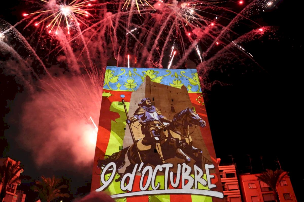 El colofón a la noche ha llegado de la mano del increíble espectáculo preparado por la pirotecnia Vulcano, que ha iluminado el cielo de Torrent con los colores de la Senyera para deleite de todos los presentes. Otra de las novedades introducidas en esta edición es que los fuegos artificiales han sido disparados desde una plataforma elevadora ubicada detrás de la Torre, enfatizando la figura del monumento con un gran torrente de luz. Asimismo, cabe destacar que durante todo el espectáculo se han proyectado sobre la Torre una serie de efectos visuales, a cada cual más sobrecogedor, por obra del artista torrentino Rosemile.