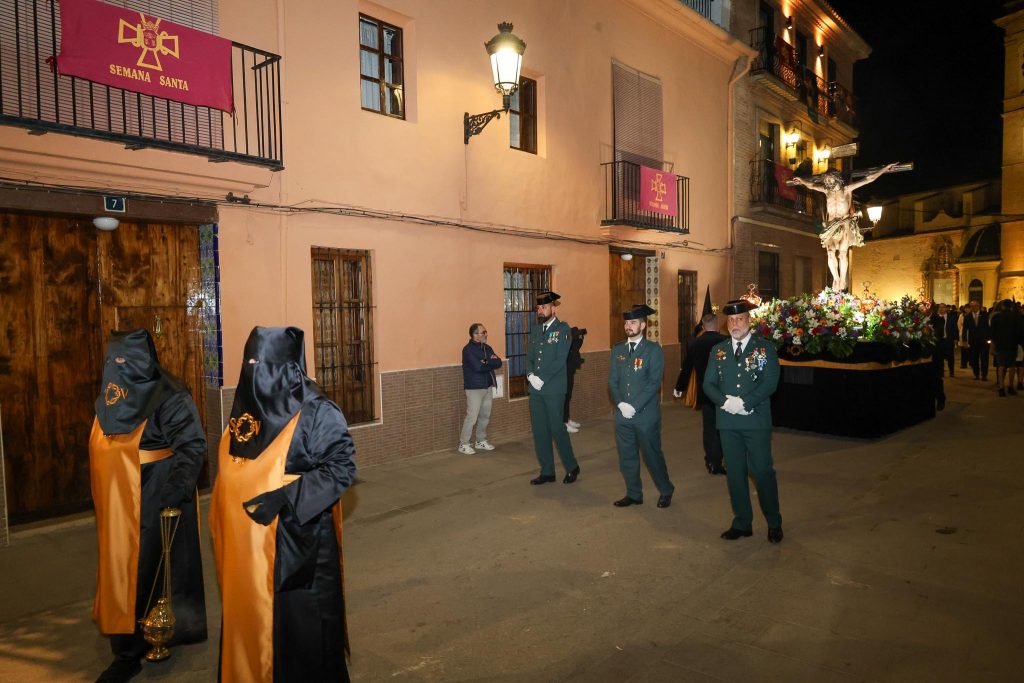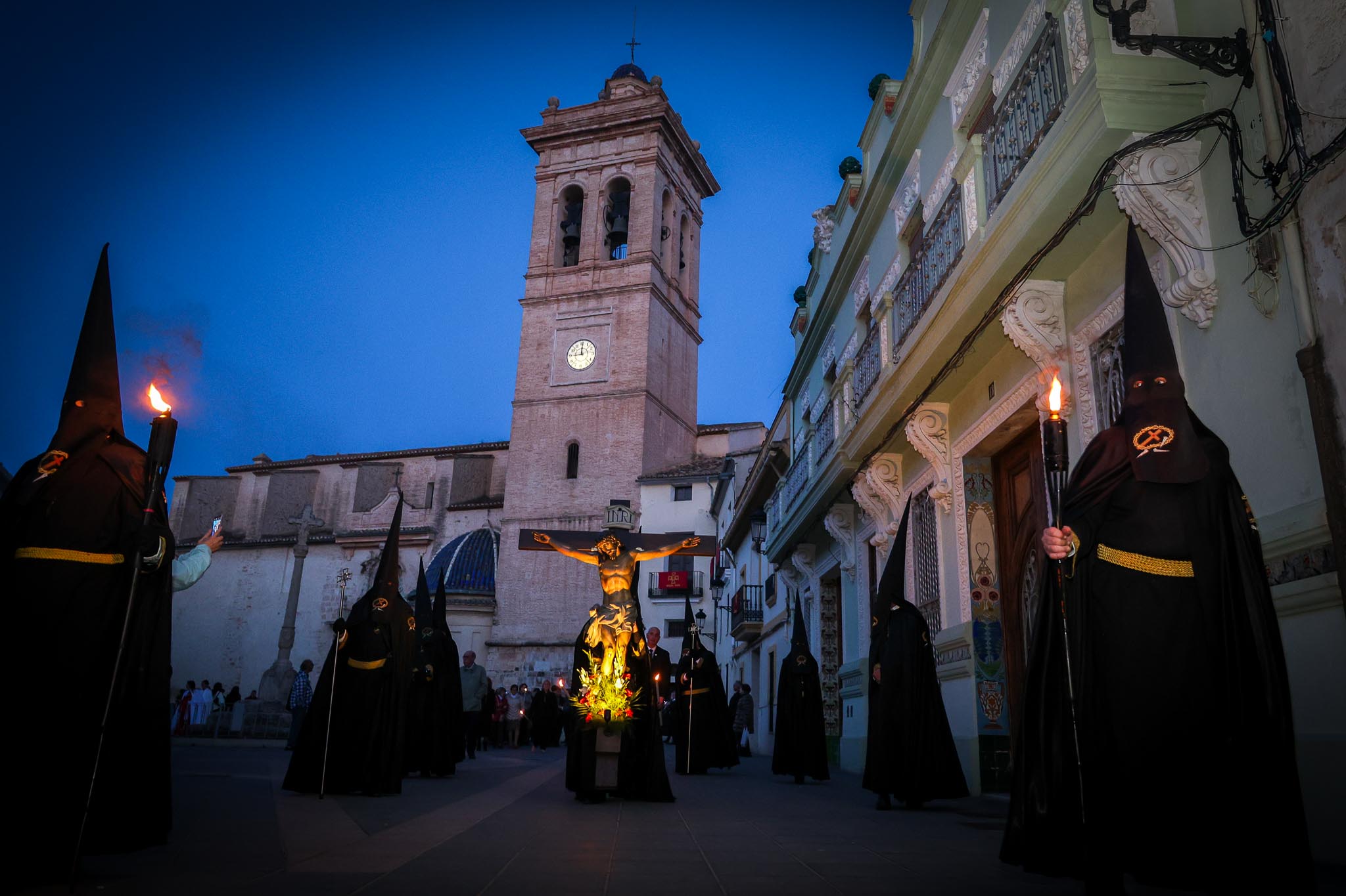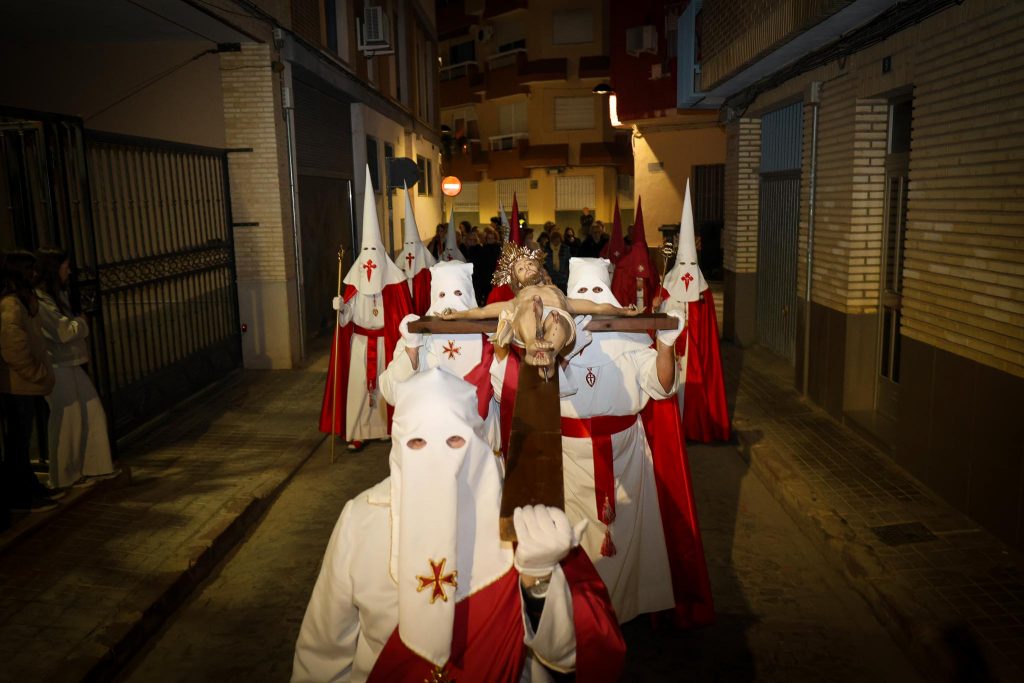 Organizada por la Muy Ilustre Hermandad de Jesús ante el Sanedrín, esta procesión se caracteriza por ser portada a costal, al estilo andaluz. Acompañada por la Banda de Cornetas y Tambores Mare Nostrum, esta procesión de estética sobria y profundamente emocional transcurre desde la Parroquia de la Asunción hasta la Casa Museo.