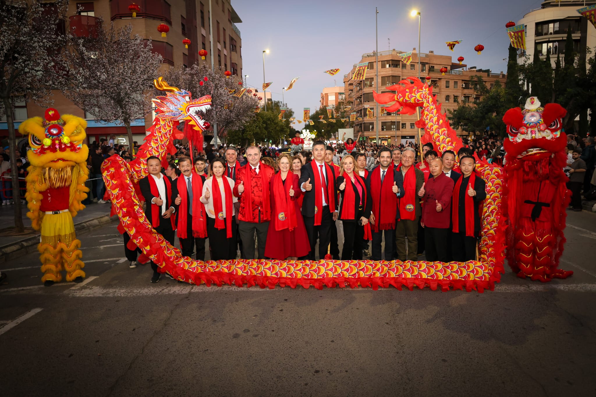 La alcaldesa recorrió a pie todo el itinerario acompañada por la Secretaria autonómica de Igualdad y Diversidad, Asunción Quinzá; el presidente de la Asociación de Empresarios Chinos en la Comunitat Valenciana, Fernando Zhou; el presidente del Instituto Confucio de la Universitat de València, Vicente Andreu; y diversas autoridades y empresarios chinos, así como el equipo de gobierno municipal. Durante el trayecto saludaron a los asistentes y repartieron los boletos para la gran rifa final, de la que se distribuyeron 7.000 participaciones.