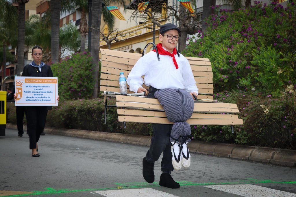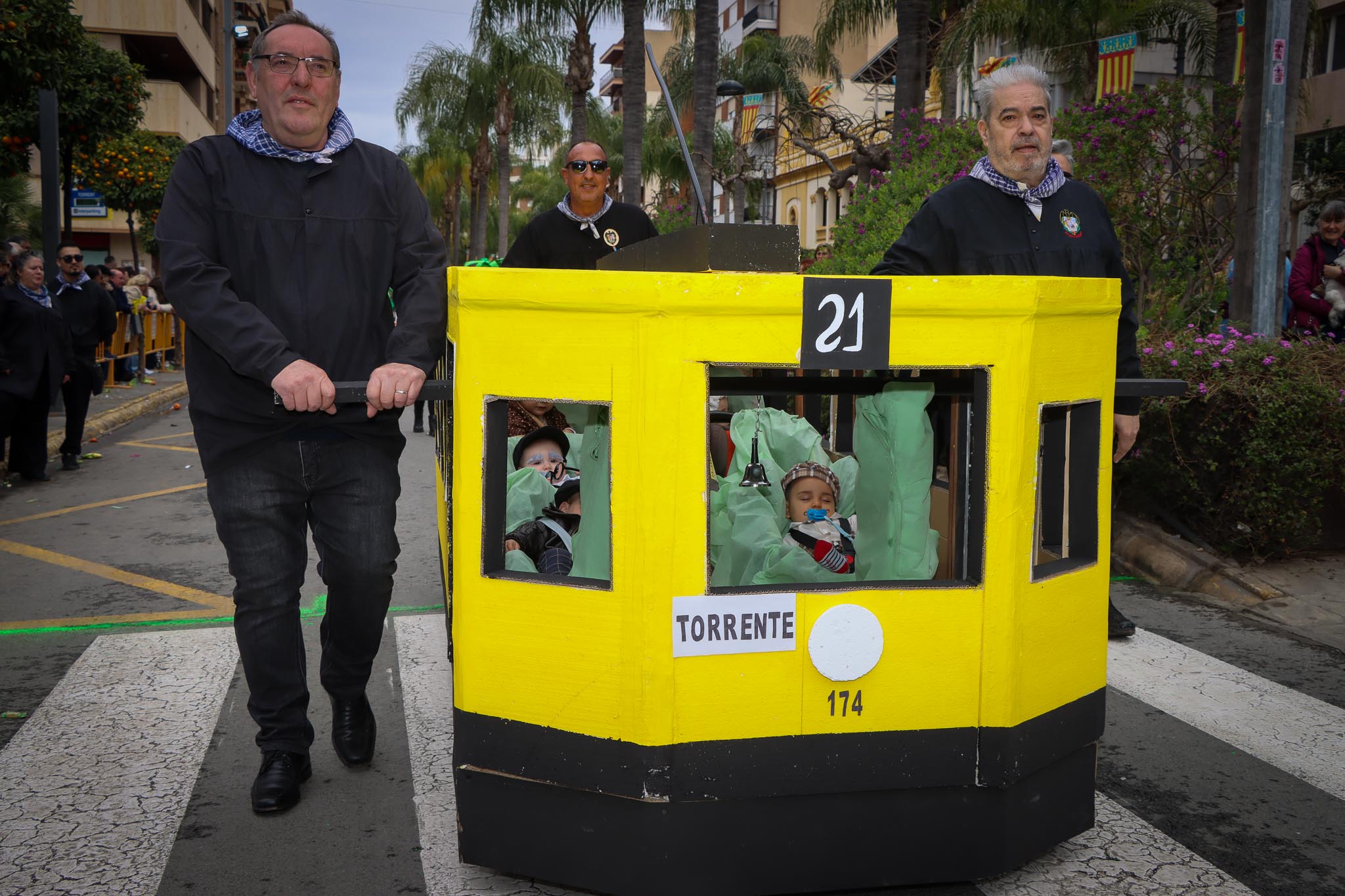 A las 10:30 horas, la comitiva fue inaugurada por la Fallera Mayor Infantil, Ana Barberá, y su Corte de Honor, quienes encabezaron el recorrido. Desde la tribuna de honor, la alcaldesa de Torrent, Amparo Folgado, la Fallera Mayor, Alicia Moreno, y su Corte de Honor, junto con el concejal de Fallas, Aitor Sánchez, presidieron el acto y disfrutaron de las representaciones que cada comisión infantil ofreció con gran creatividad y esfuerzo.