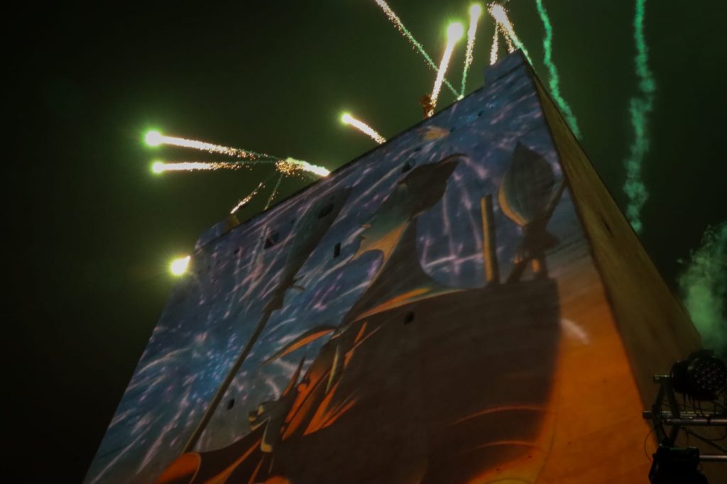 - Con un espectáculo audiovisual, escobas, fuego, pirotécnia y tradición en un lienzo vivo proyectado en la Torre, que rindió homenaje y reconoció a los héroes, representados por el ‘Granerer’, del colectivo fallero y voluntarios con su innata solidaridad y generosidad