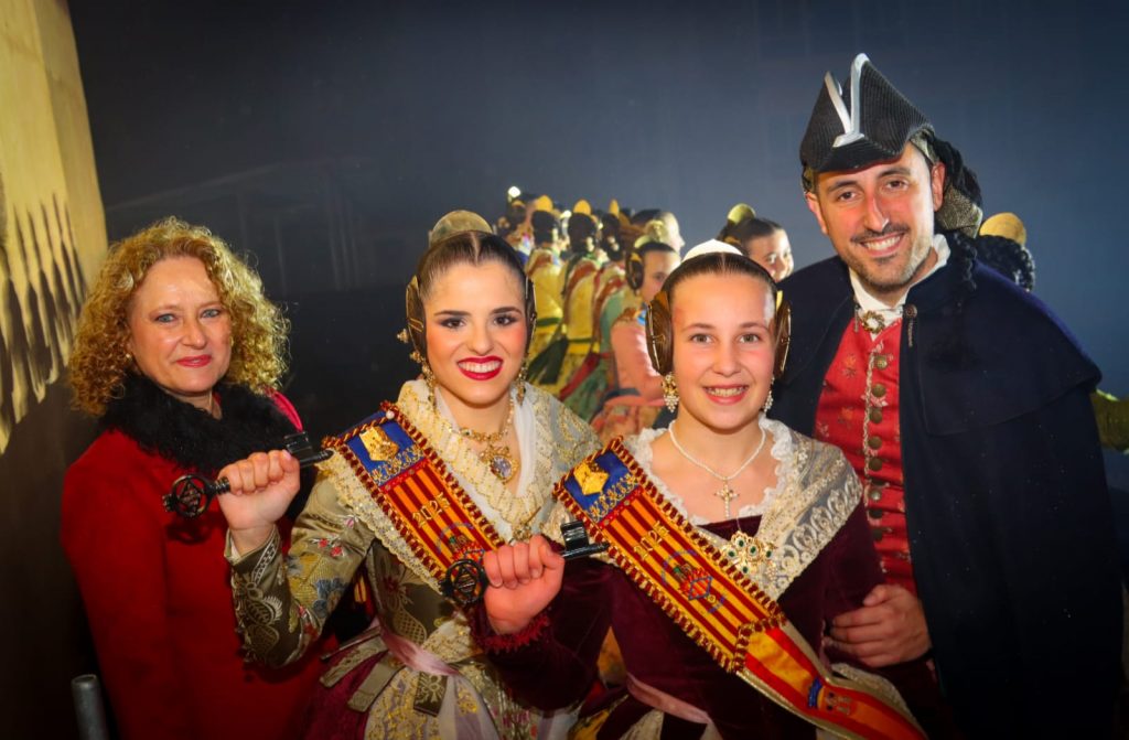 Tras la espectacular proyección, la alcaldesa dirigía unas palabras emotivas y cariñosas a los miles de falleros congregados y entregaba las llaves de la ciudad a Alicia y Ana como máximas representantes de las Fallas de 2025 de Torrent.